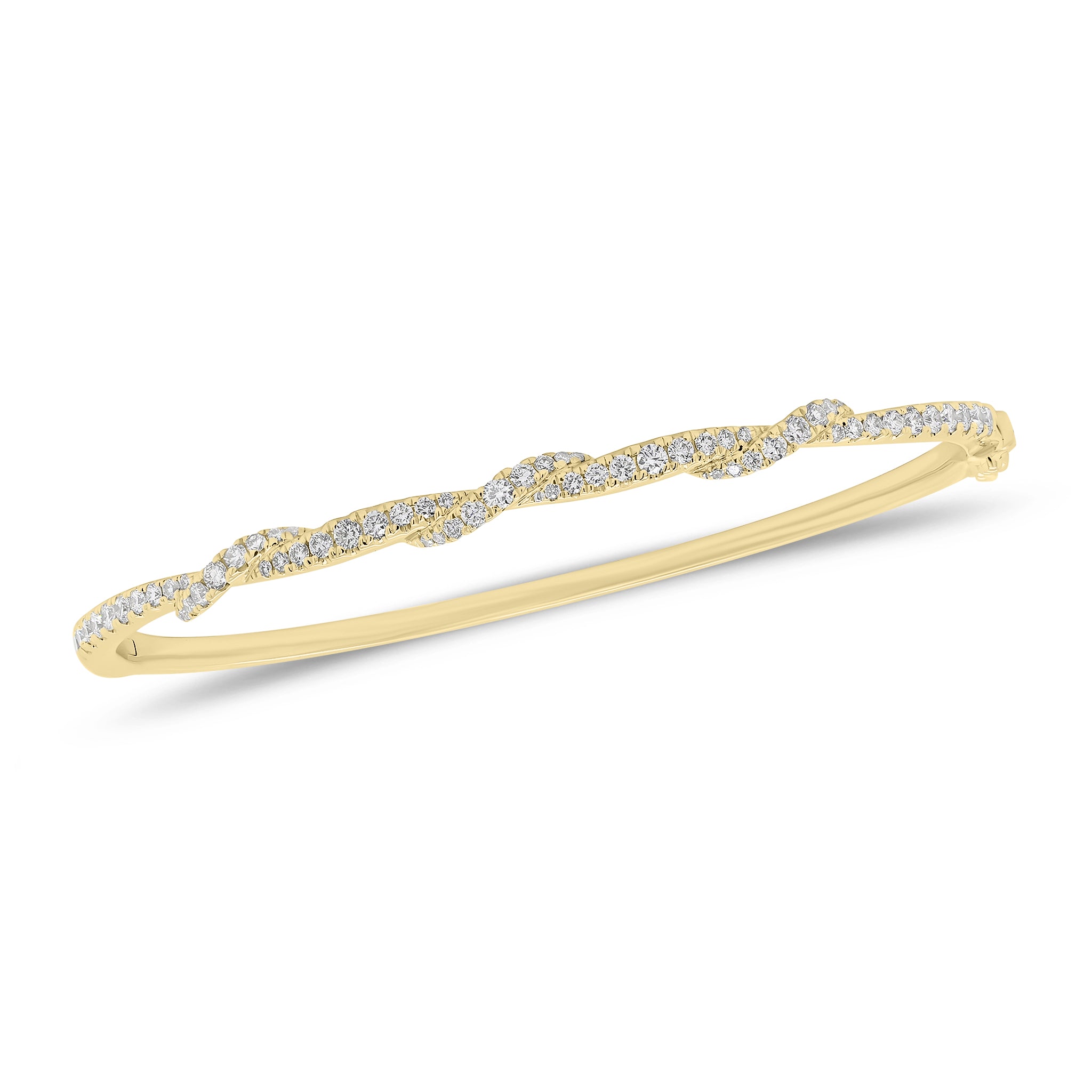 Dress up your everyday styles with this sleek bangle. Featuring an elegant twist design and round diamonds set in 18K gold, this piece will effortlessly elevate your looks.