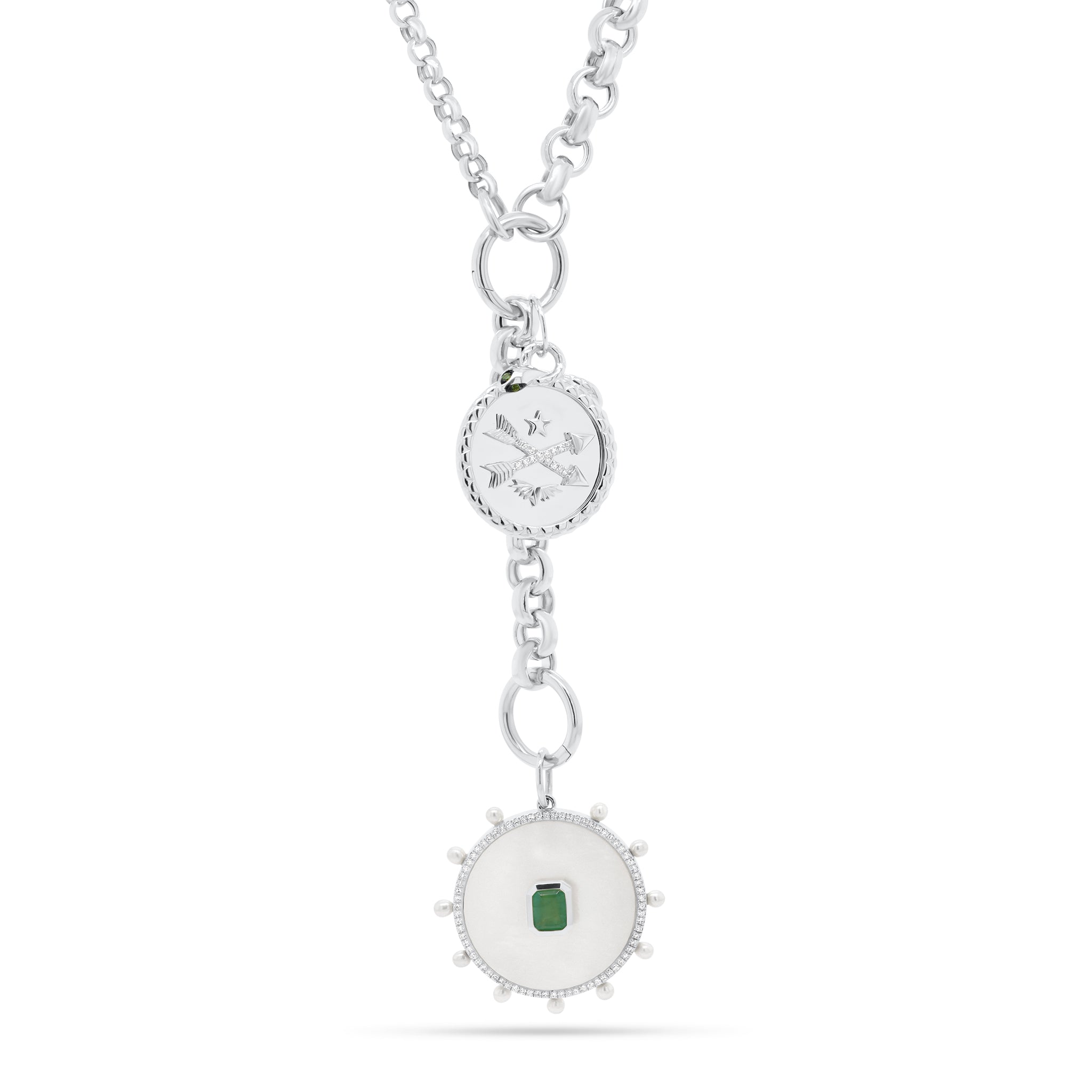 Emerald & Diamond Arrows & Snake Pendant