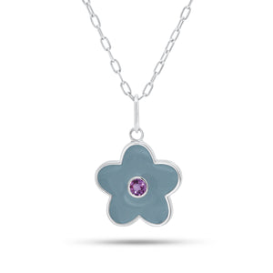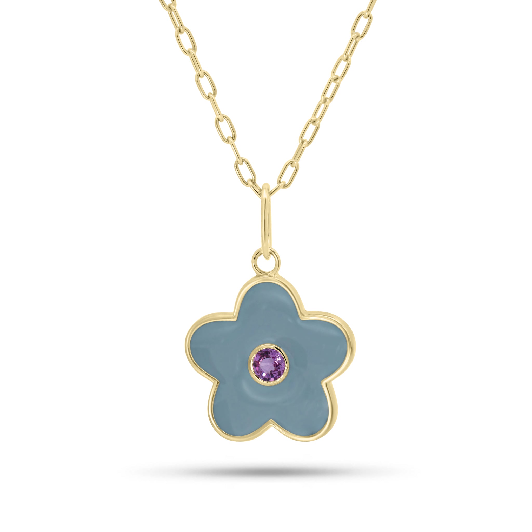 Brighten up a dreary day with this colorful pop art flower pendant. Featuring a vibrant pink sapphire and glossy enamel, this piece will add fun and flair to all your looks.