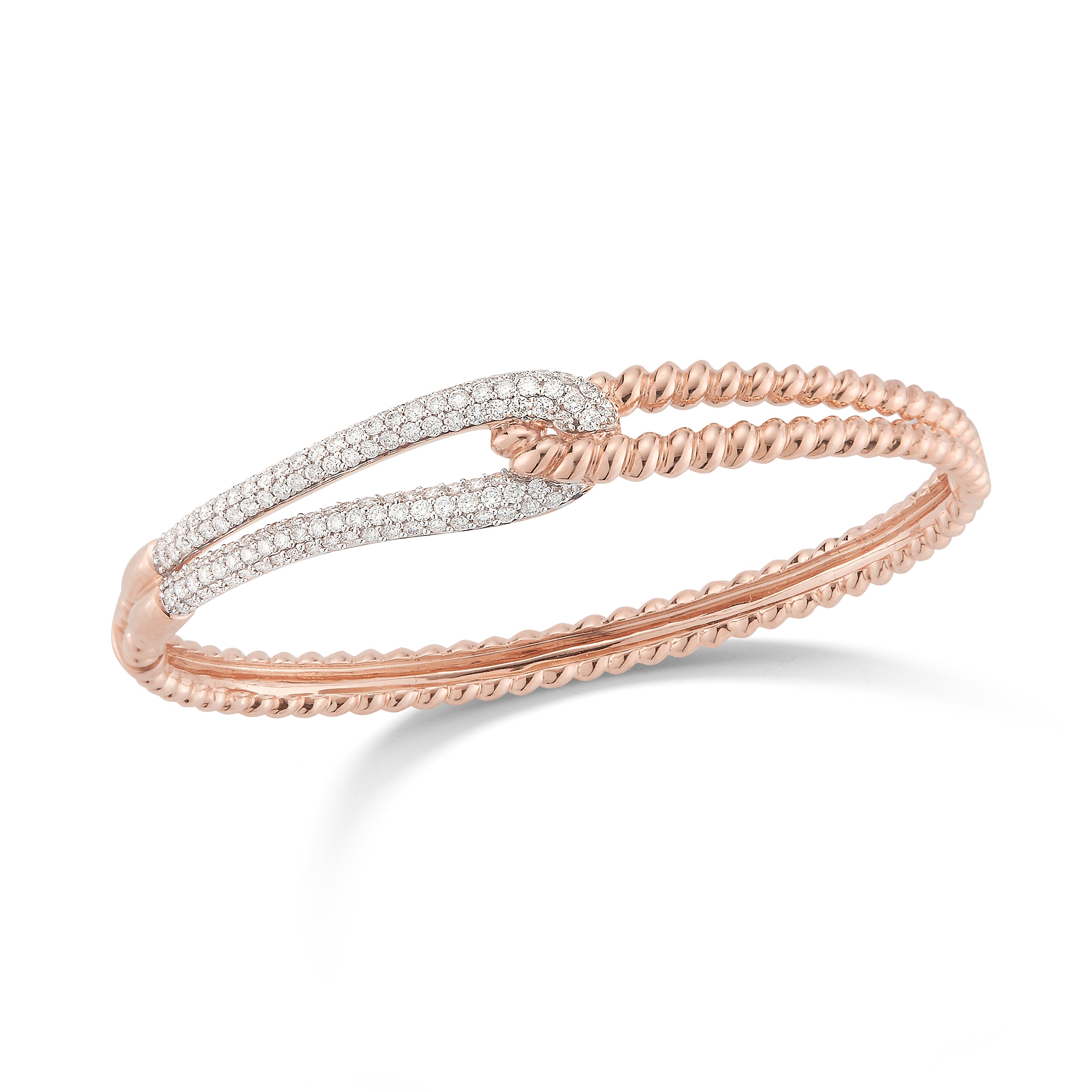 This elegant bangle features a lustrous 18K gold rope linked to a setting of dazzling pave diamonds.