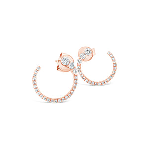 These stunning diamond push-back hoop earrings are composed of round diamond looping around in a circular motion making for a unique setting.