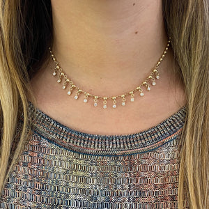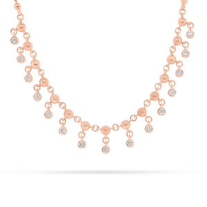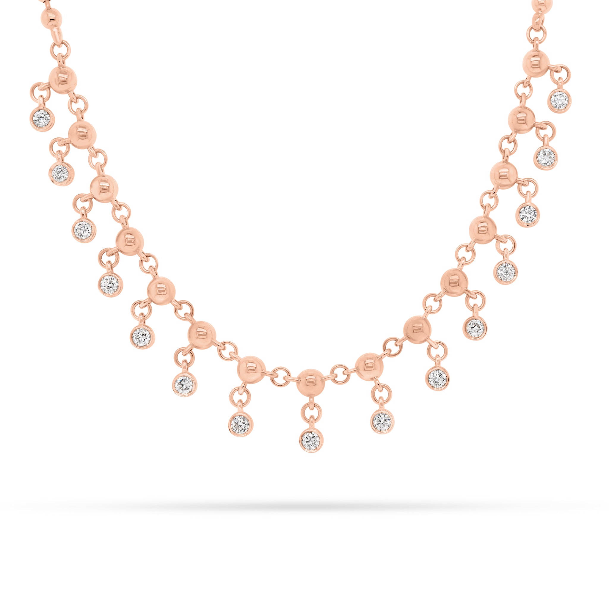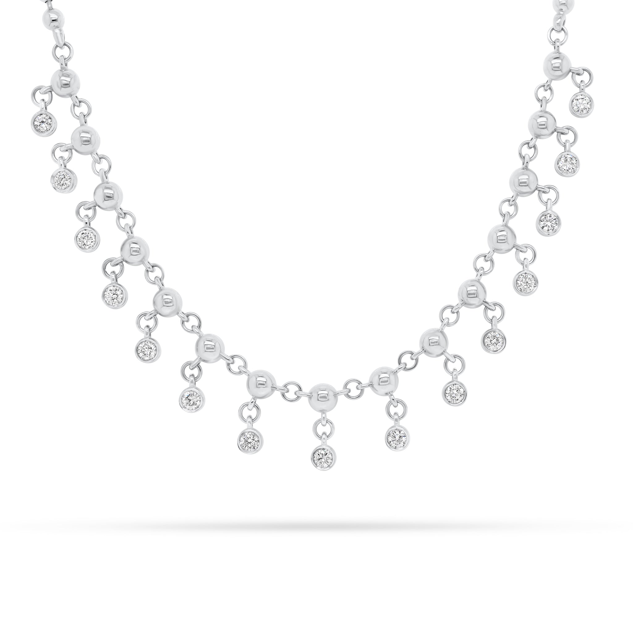 Sparkling and elegant, this necklace features bezel-set diamonds set below lustrous 14K gold ball beads. It’s the only piece you need to make a chic style statement.
