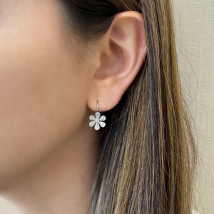 Diamonds in the Diamond Large Flower Lever-Back Earrings are all natural Earth mined.
