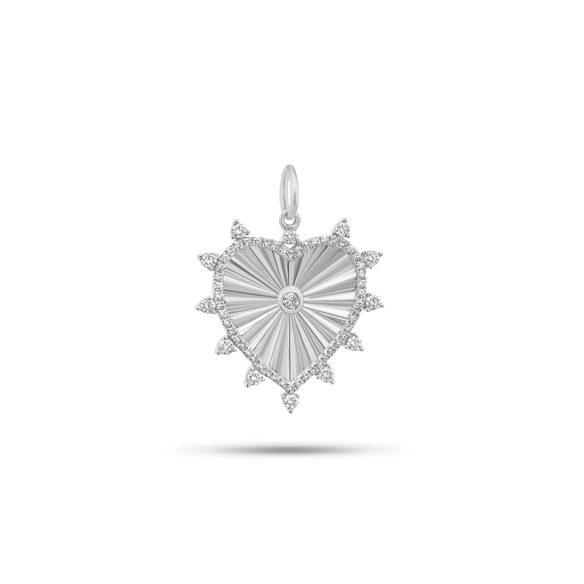 Express your love with this fluted gold heart pendant. Complete with a diamond-dotted frame and a bezel-set diamond at the center, this impeccably designed piece will be cherished forever.
