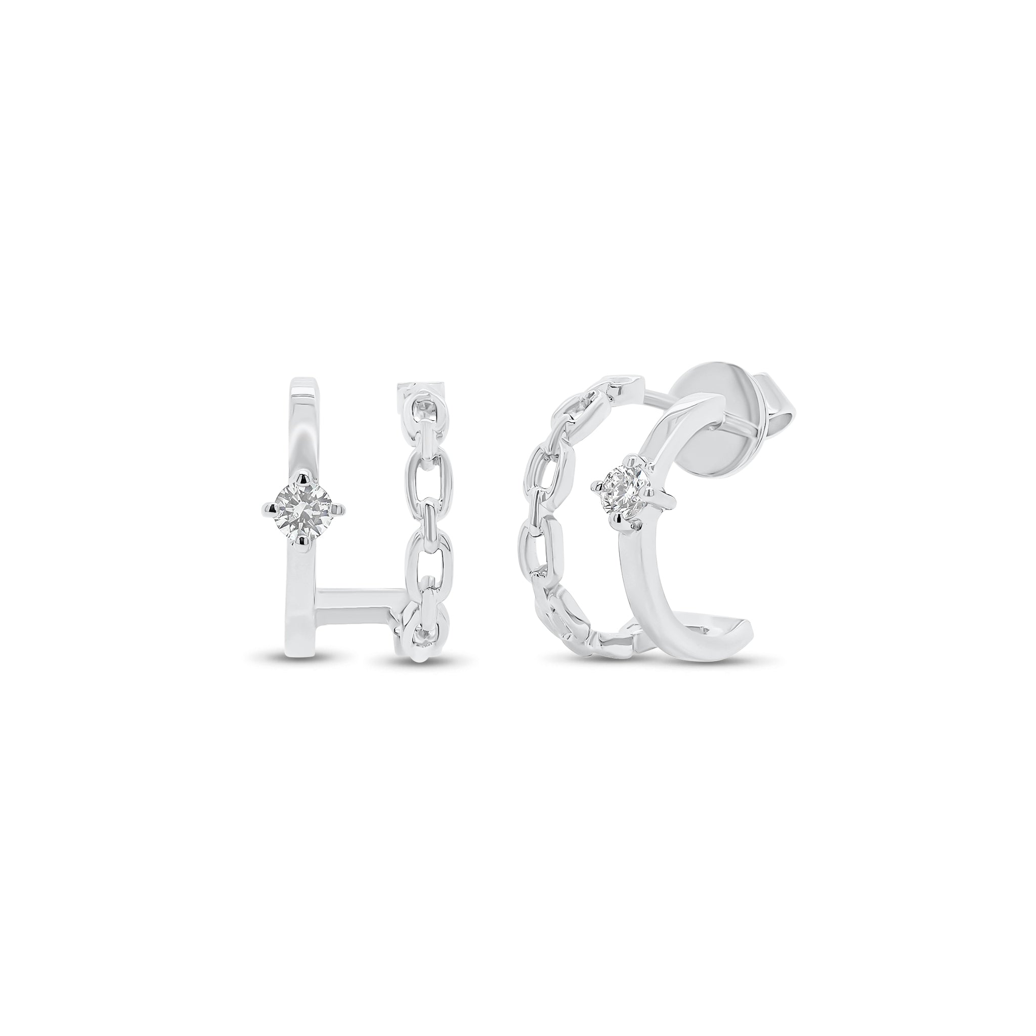 Show off your edge with these chic 14K gold ear cuffs. Featuring one solid gold cuff with a round diamond and another in a cable chain design, these dainty ear jewels are sure to complement your style.