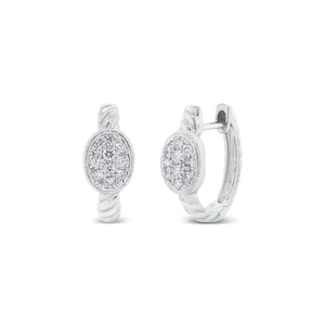 A pretty twist on a classic – these textured gold huggie earrings feature oval stations set with diamonds.