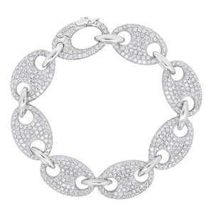 This puffed mariner chain bracelet features 14K gold links encrusted with diamonds, a glam take on a nautical style. It sparkles brightly all on its own, but can also be layered with other pieces for a truly luxurious look. Its hidden clasp makes for a chic, seamless design.