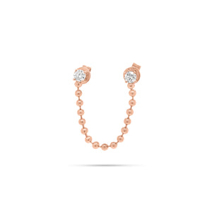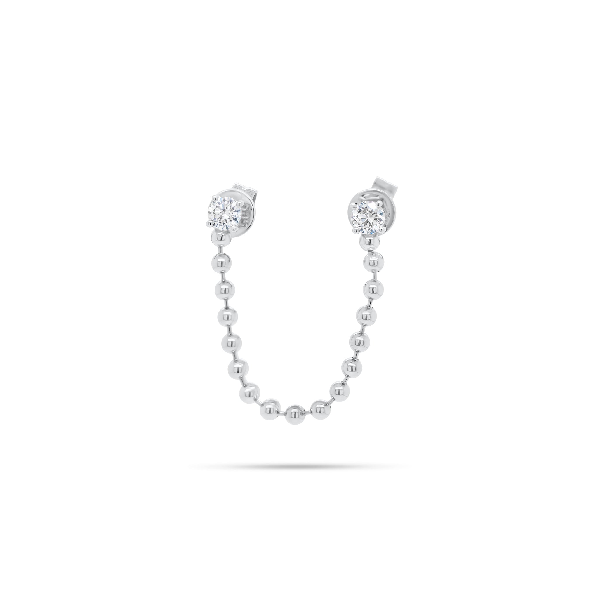 Fine jewelry, with an edge — this double-stud earring features two glittering round diamonds joined by a lustrous 14K gold ball chain. This one accessory will effortlessly elevate all your looks.