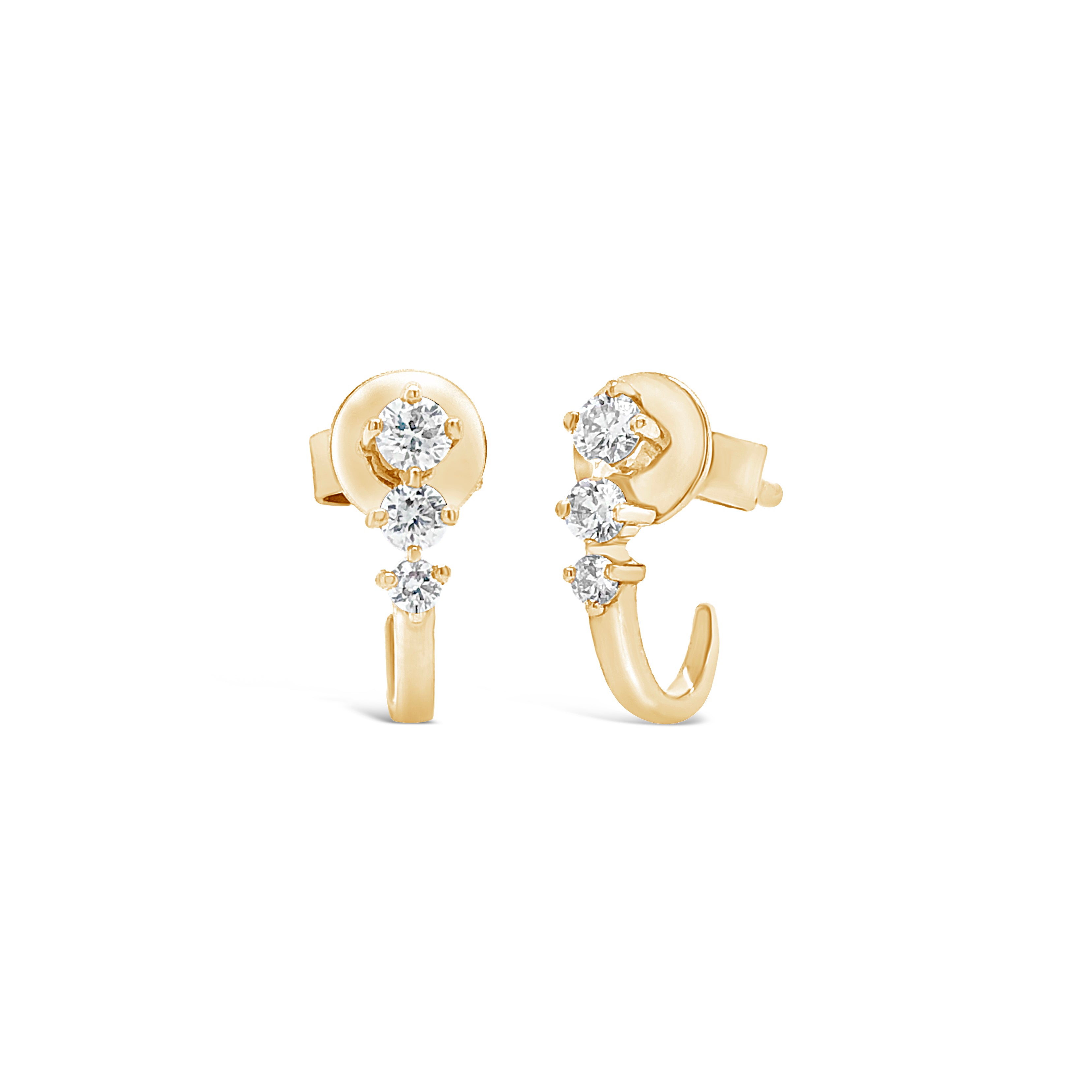 These stunning diamond push-back hoop earrings are composed of round diamond looping around in a circular motion making for a unique setting.