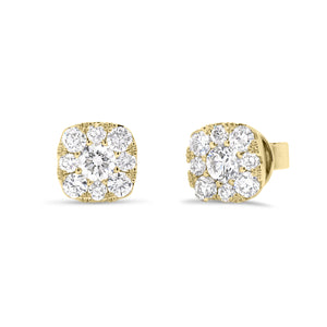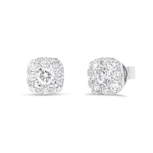 A subtle alternative to traditional diamond studs, this chic pair features round brilliant-cut stones complemented by a cushion-shaped frame of more sparkling diamonds. They’re the perfect gift for any milestone.