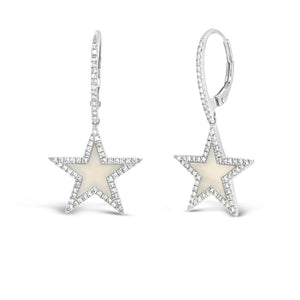 Mother of Pearl & Diamond Star Lever-Back Earrings