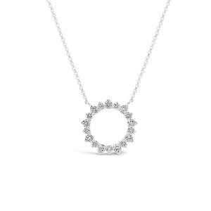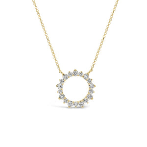 Shine bright like a ray of sunlight with the gorgeous Circle of Life pendant. Featuring beautiful round-cut diamonds and a lustrous rolo chain, this classic piece makes for a striking staple.