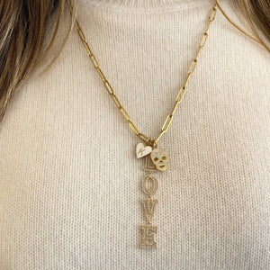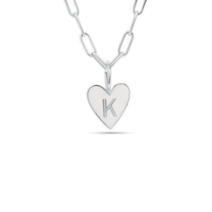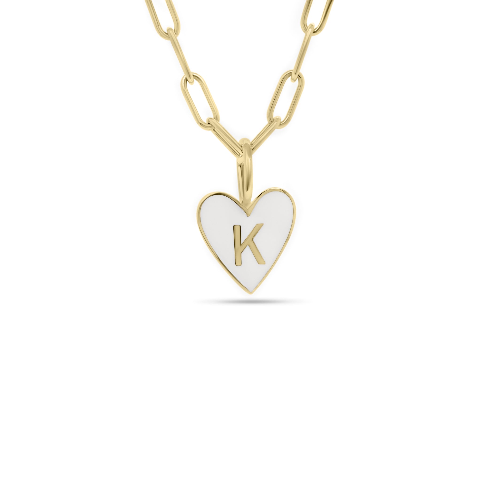 We love this chic and trendy initial necklace. Featuring an enamel heart pendant on a 14K gold paperclip chain, this personalized piece makes for a great gift – for yourself or a loved one!