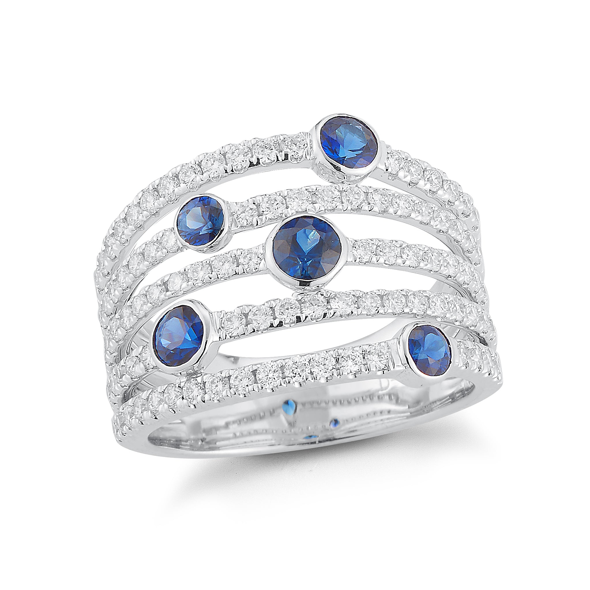 -5 round bezel-set sapphires totaling .78 carats