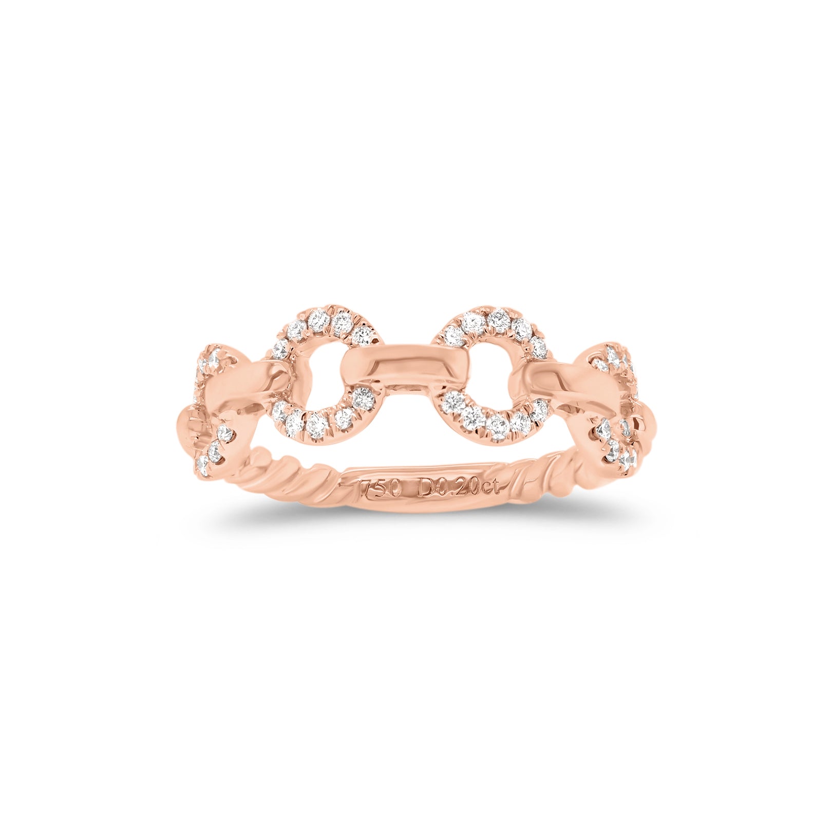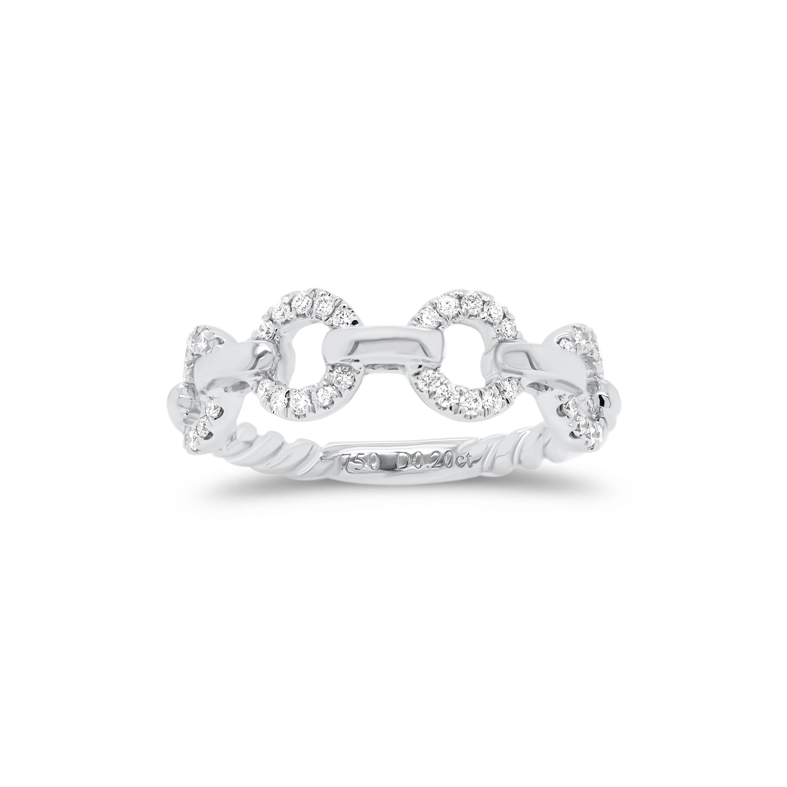 Bring a modern touch of sparkle to your style with this 18K gold stacking ring. With circular links set with diamonds and twisted gold detail, it’s a chic design that looks fabulous with any look.