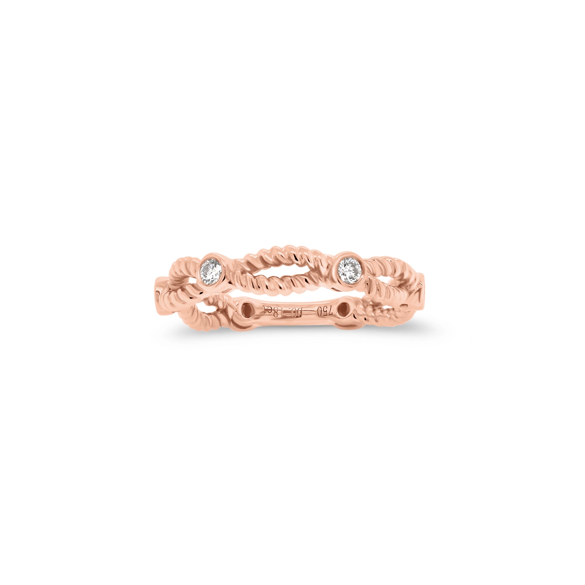 Whether stacked with others or worn solo, this 18K gold ring always looks chic. Bands of twisted metal give it a lustrous, textured look, while bezel-set diamonds make it sparkle.