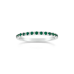 This emerald eternity band beams with green, the color of nature! Perfect for the lady with a May birthday, or anyone who appreciates the beauty of this verdant gem.