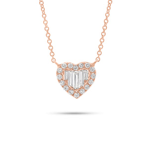 Diamonds in the Round & Baguette Diamond Heart Pendant Necklace are all natural Earth mined.