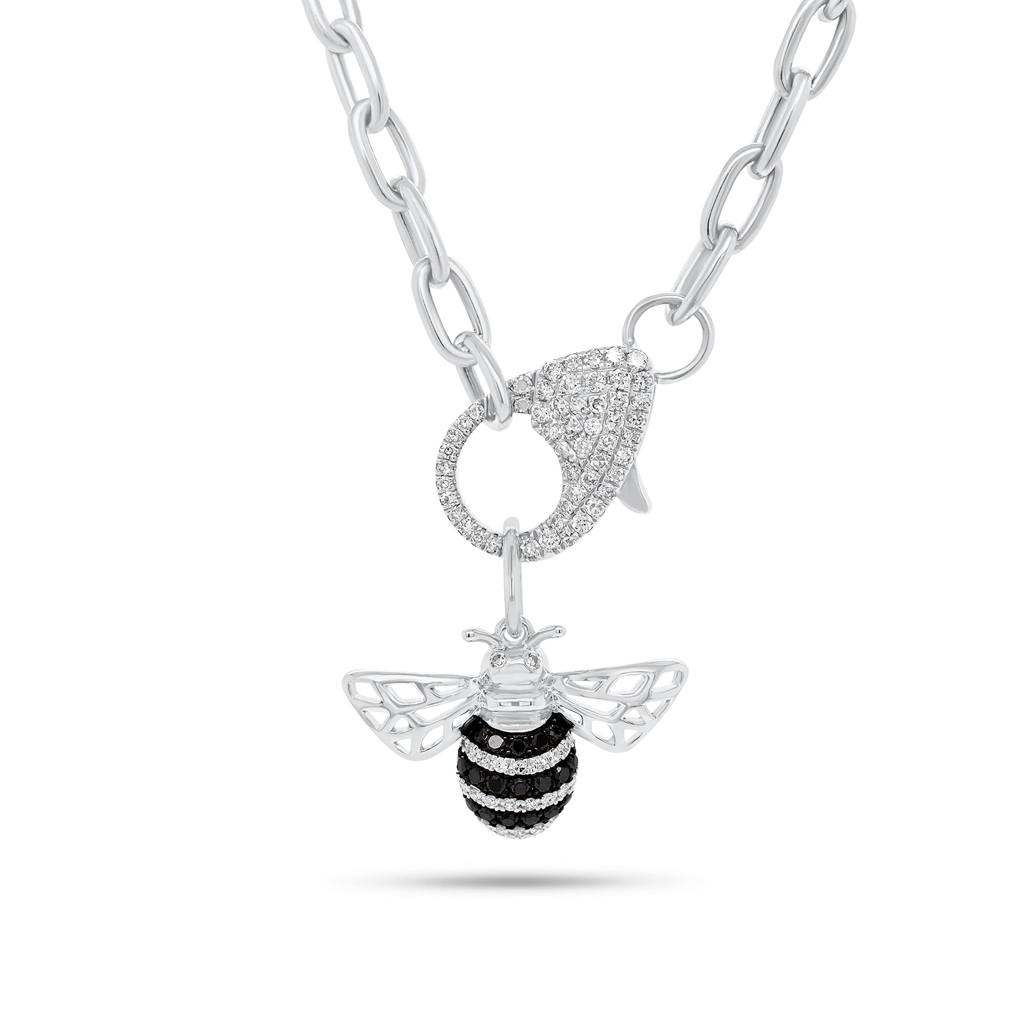 We’re buzzing about this beautiful bumblebee charm! In addition to a pattern of black and colorless diamonds, it features intricately cut wings and twinkling diamond eyes.