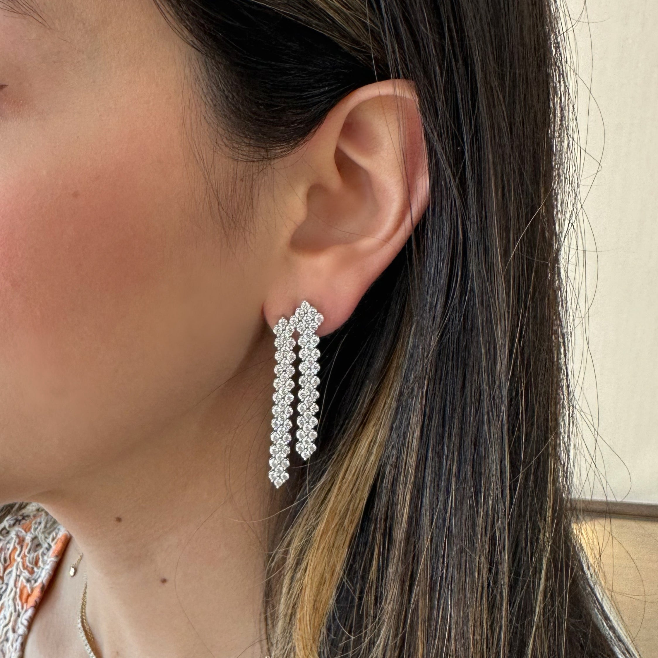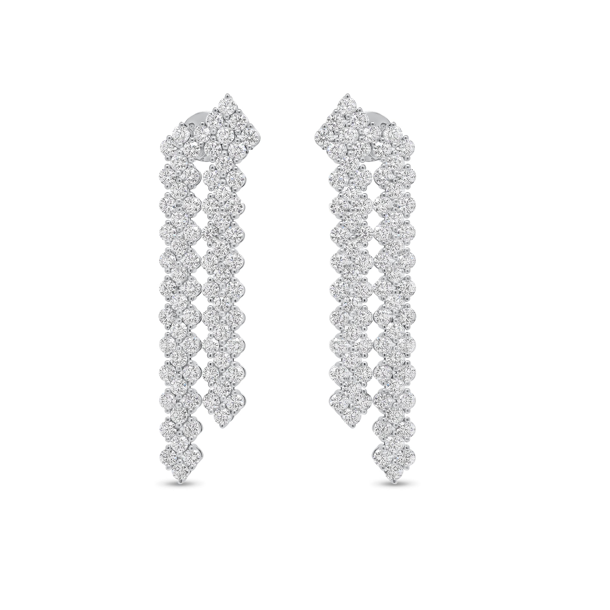 Make a sparkle statement with our glamorous Waterfall Earrings. Featuring a cascade of round diamond clusters set in 14K gold, these dazzling danglers are sure to catch eyes.