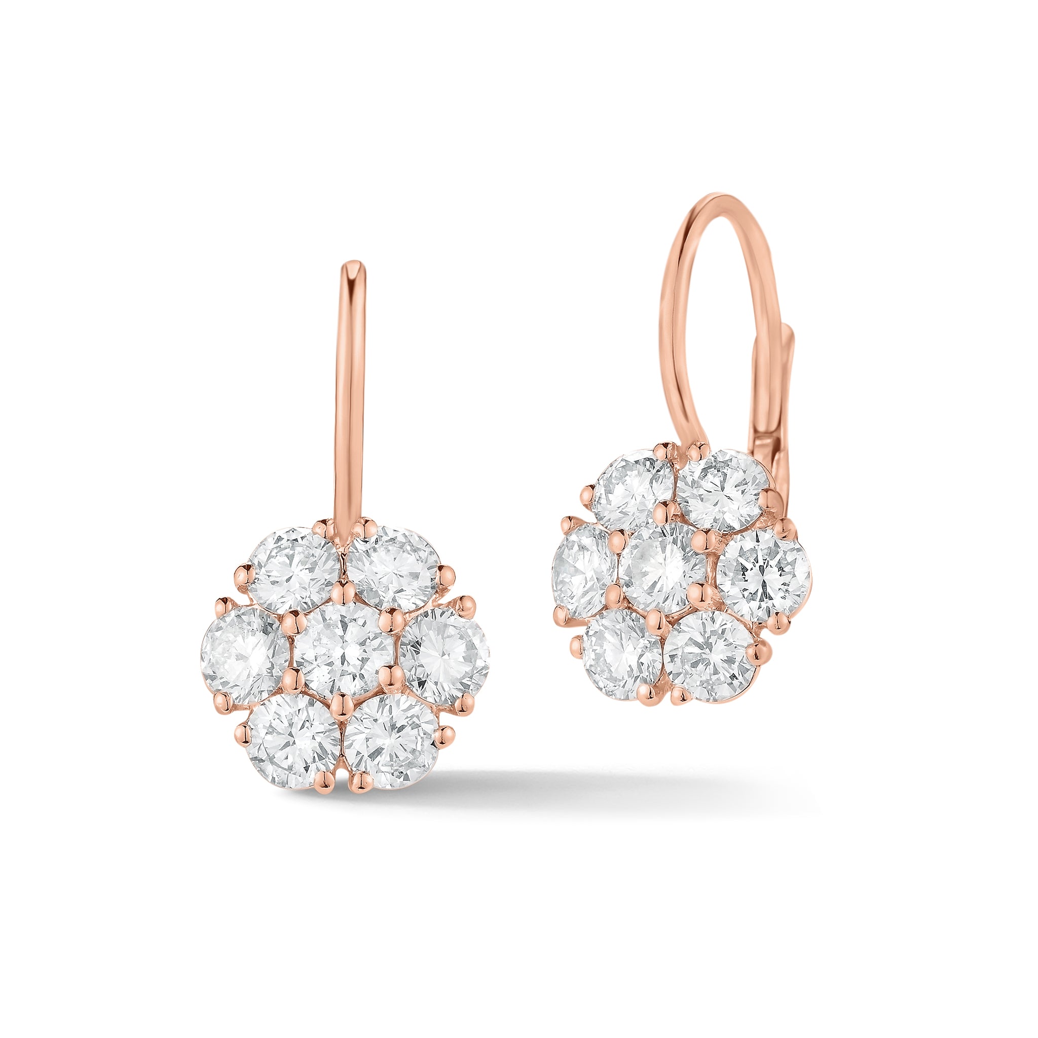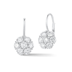 These classically stunning lever-back earrings feature a cluster of round brilliant-cut diamonds in an intricate 14K gold shared prong setting.