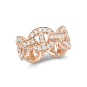 Circular links of brilliant diamonds set in 14k gold come together to create this exquisite fashion piece.