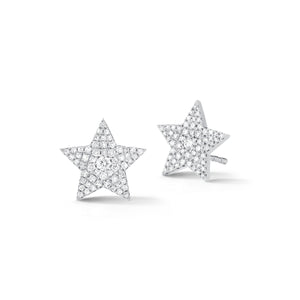 Always chic, these diamond earrings feature round diamonds pave-set in a star design of 14k gold, post closure.