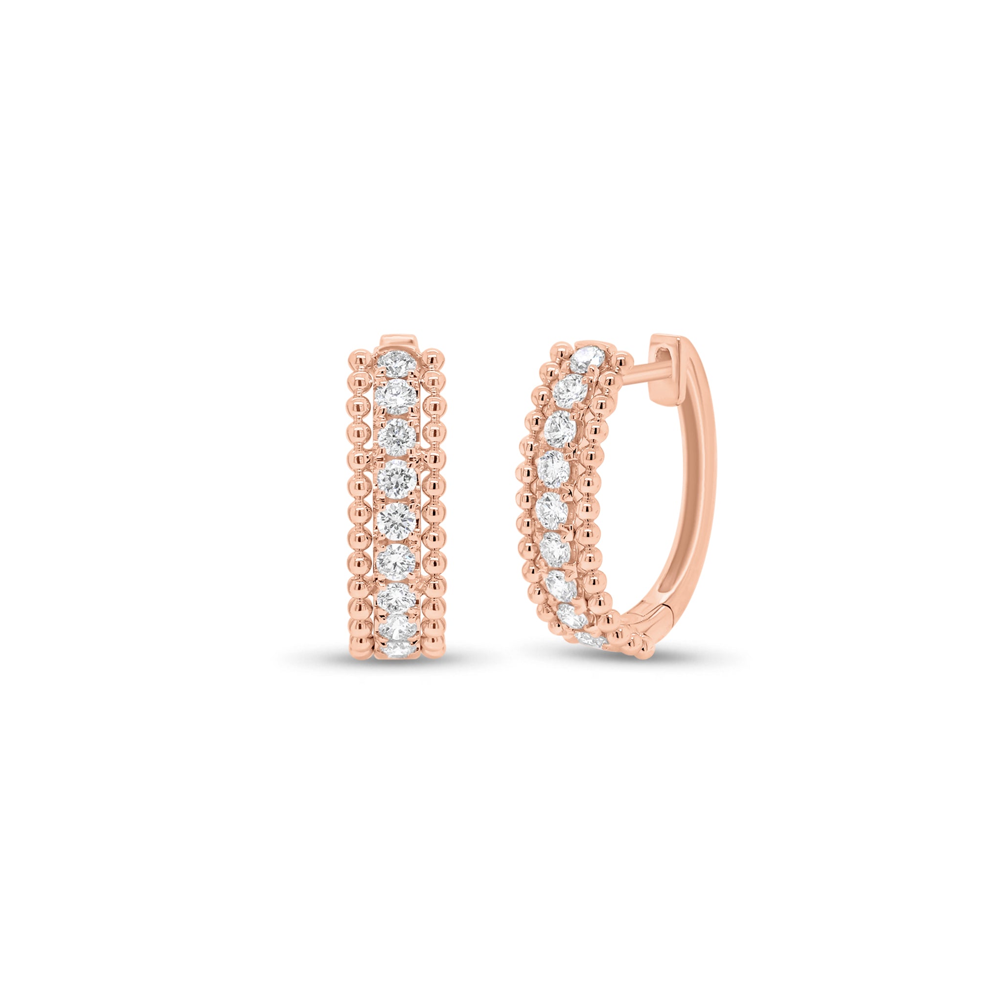These chic huggie earrings feature sparkling round diamonds and beaded gold detail. They’re a practical and effortless way to elevate your styles.