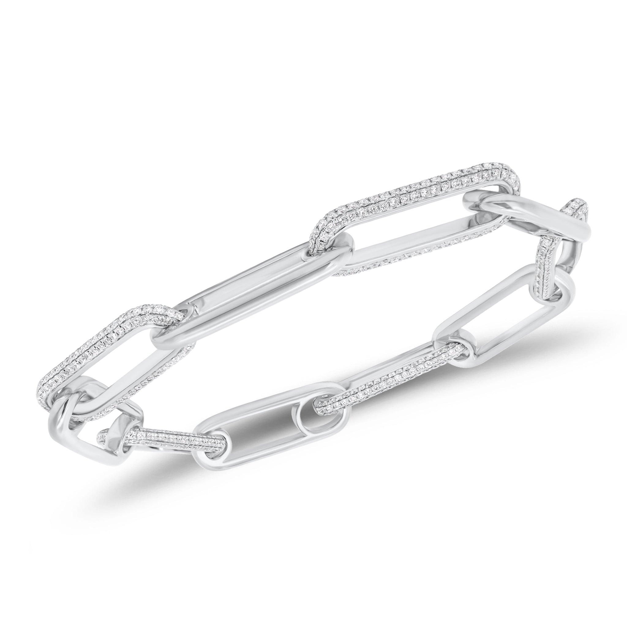 Two complementary metals are showcased in this dazzling paperclip chain bracelet. Featuring a pattern of 18K gold and diamond-encrusted links, this beautifully designed piece will take a special place in your collection.