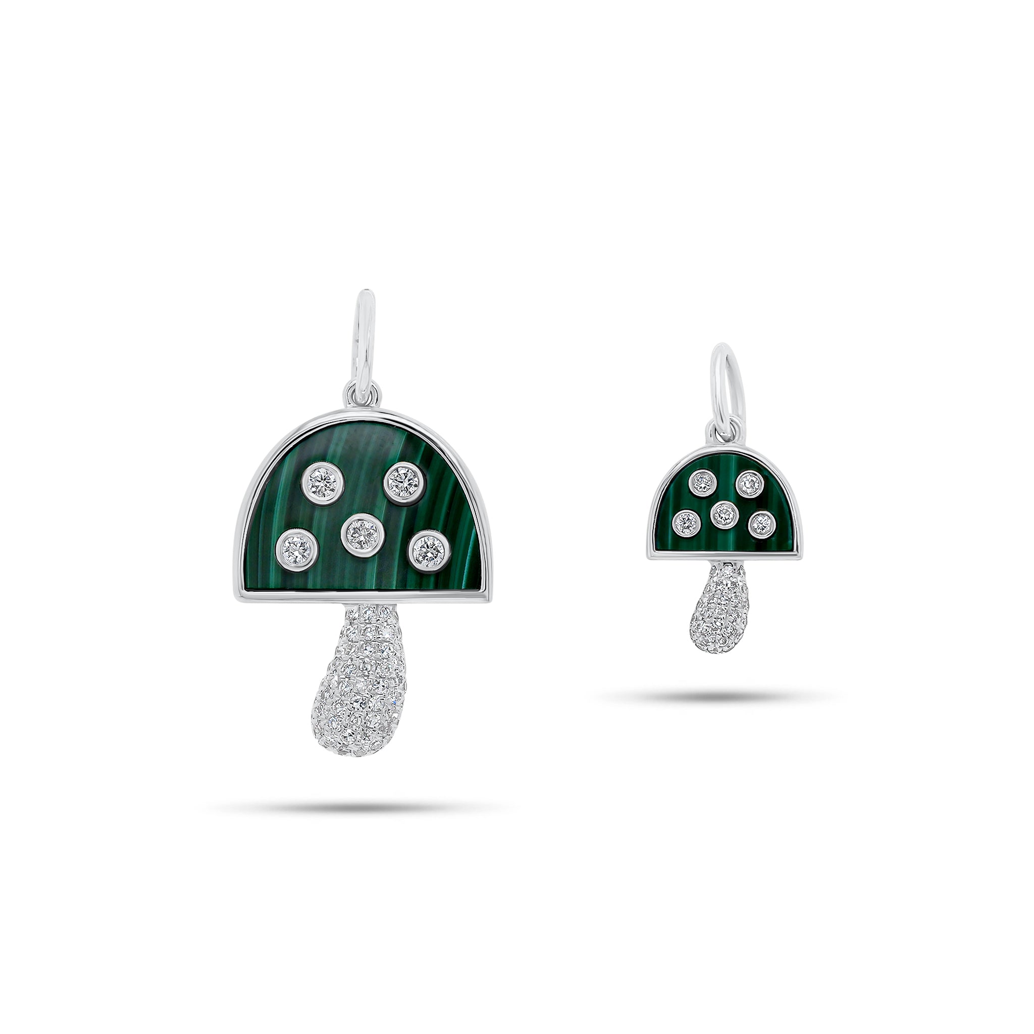 Diamonds in the Large Diamond & Malachite Mushroom Pendant are all natural Earth mined.