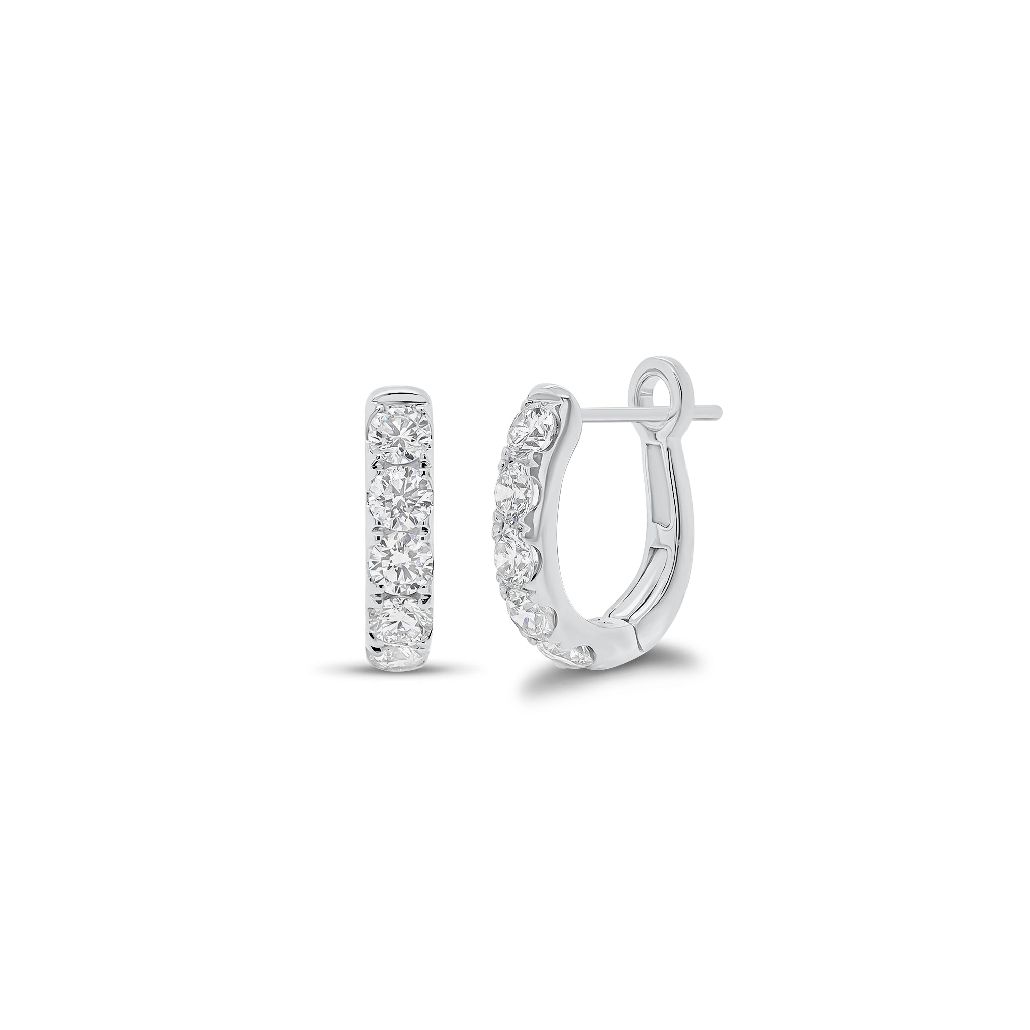 Diamond huggies are an essential for every jewelry collection. These petite hoops sparkle with 10 round diamonds, precisely set in 14K gold.