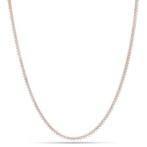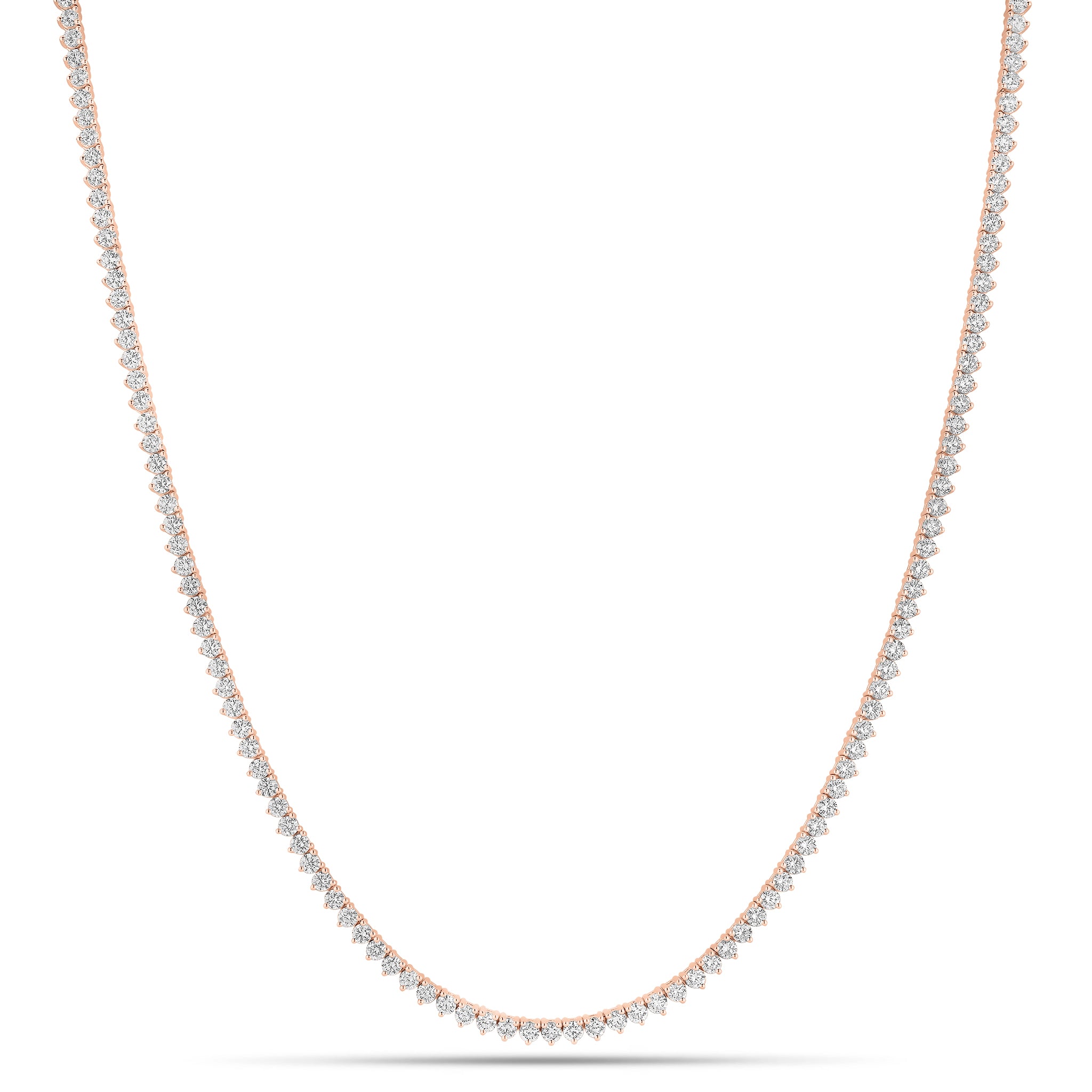 The diamond tennis necklace is a classic accessory with enduring sparkle. Featuring 169 round diamonds set in 14K gold, this gorgeous piece will dazzle and impress for a lifetime.