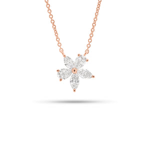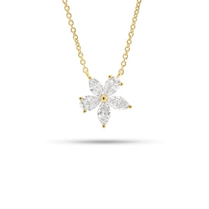 Not your typical flower pendant, this beautiful style features a unique arrangement of pear and marquise-shaped diamond petals. It will brighten up your days while adding a chic touch of sparkle to all your looks.