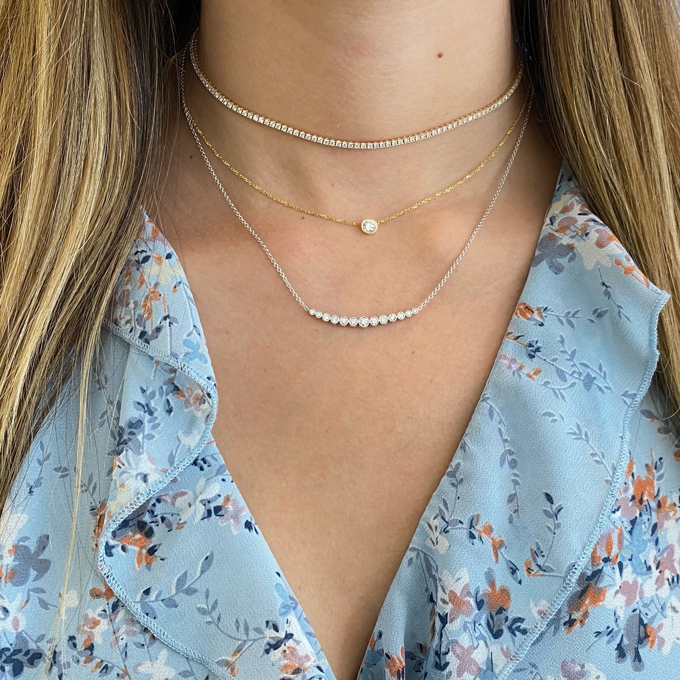 Classic and elegant, this 18K gold cable chain necklace features an arch composed of sparkling diamonds in bezels with fine milgrain detail. A beautiful piece for everyday wear.