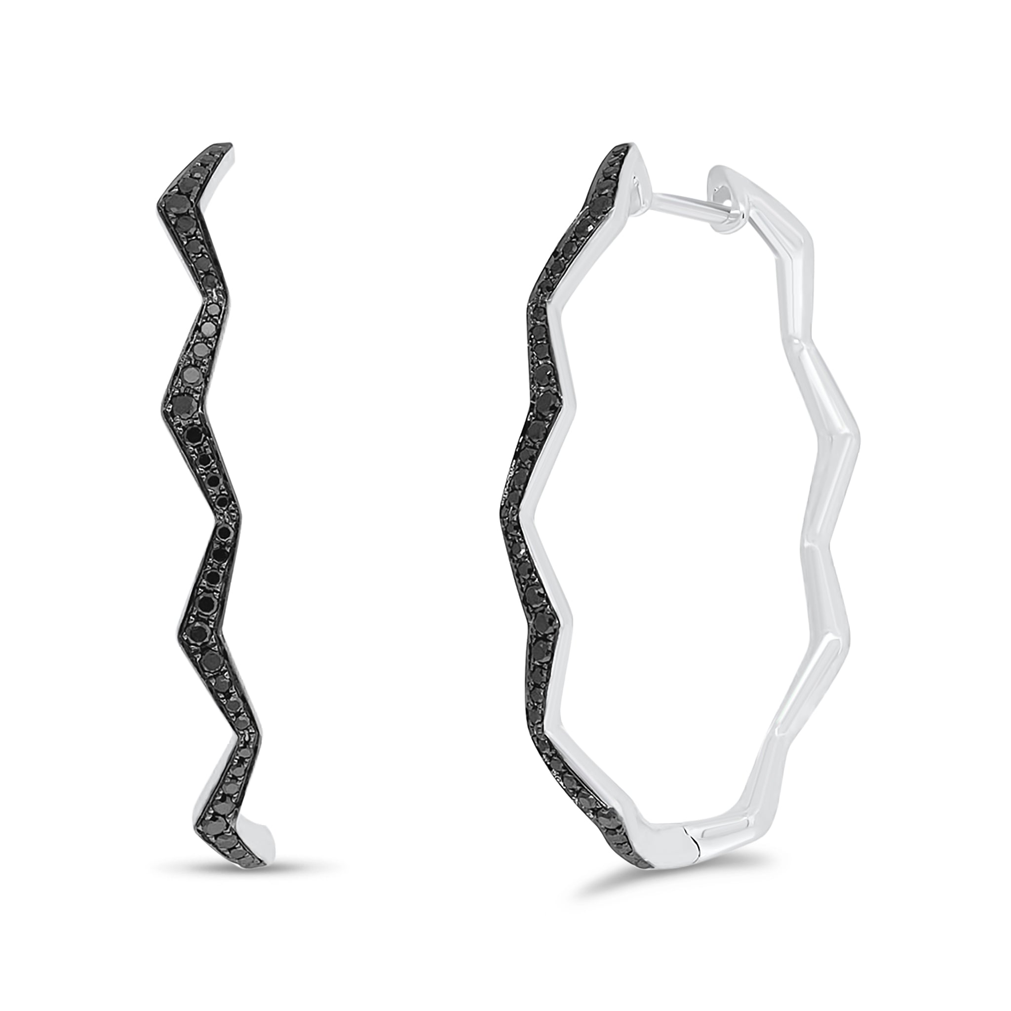 Bring some edgy glam to your looks with these black diamond zig-zag hoops. Featuring 0.35 carats of shimmering gems, these unique earrings look just as chic with distressed denim as they do with a little black dress.