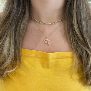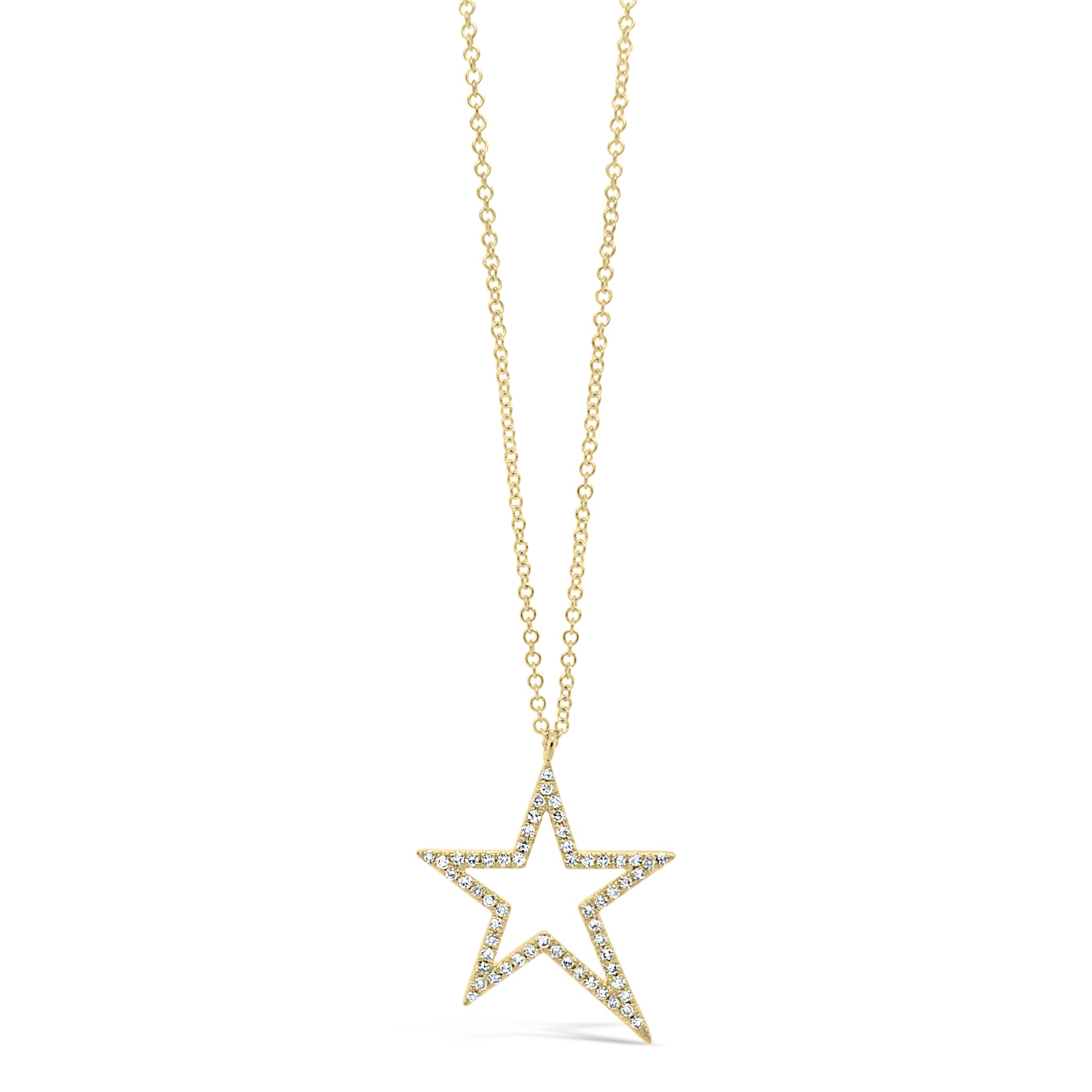 Light up the room with this shining star! Crafted of 14k gold and sparkling pave diamonds, the asymmetrical star pendant is a classic staple with a modern twist.
