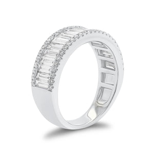 Diamonds in the Round Diamond & Baguette Wedding Band are all natural Earth mined.