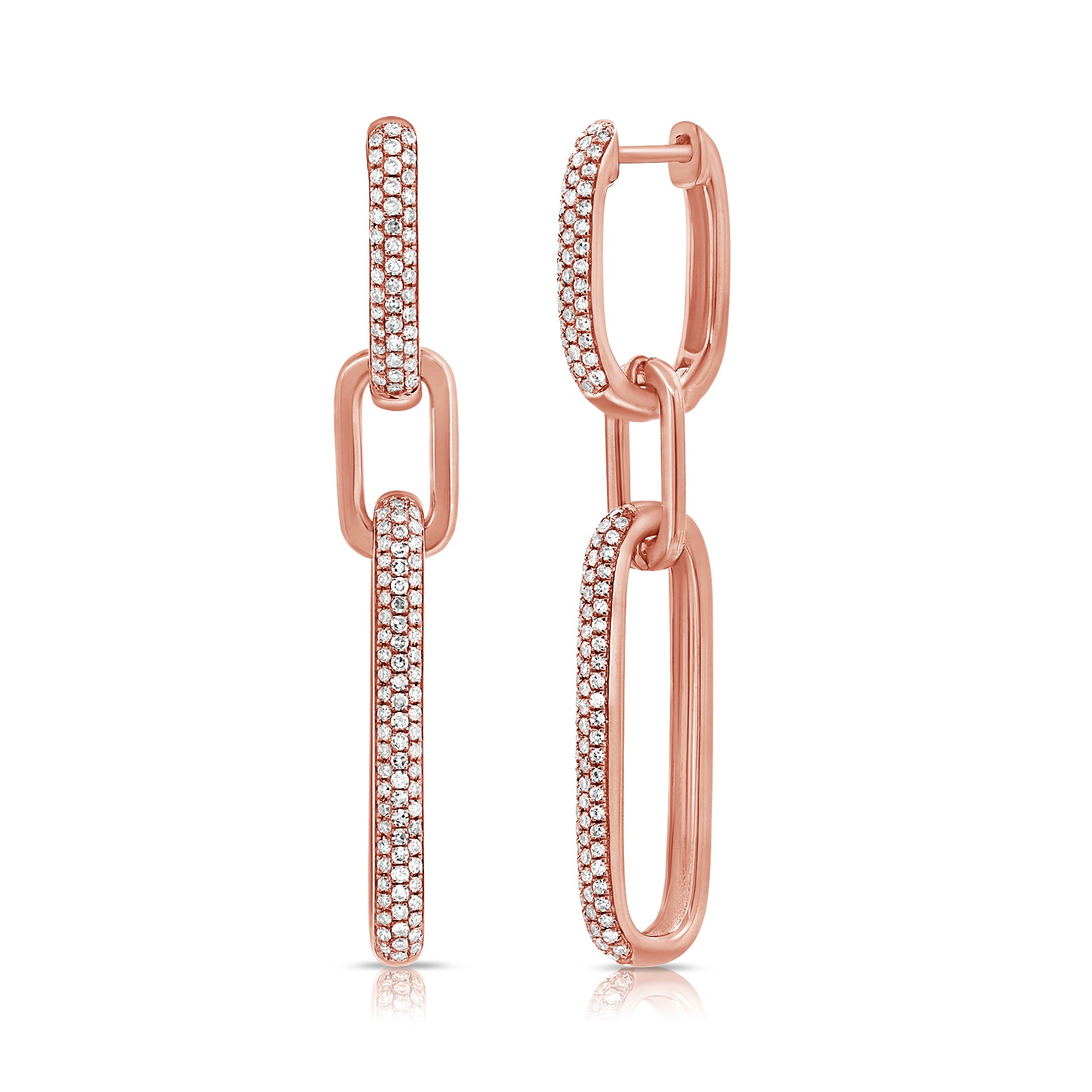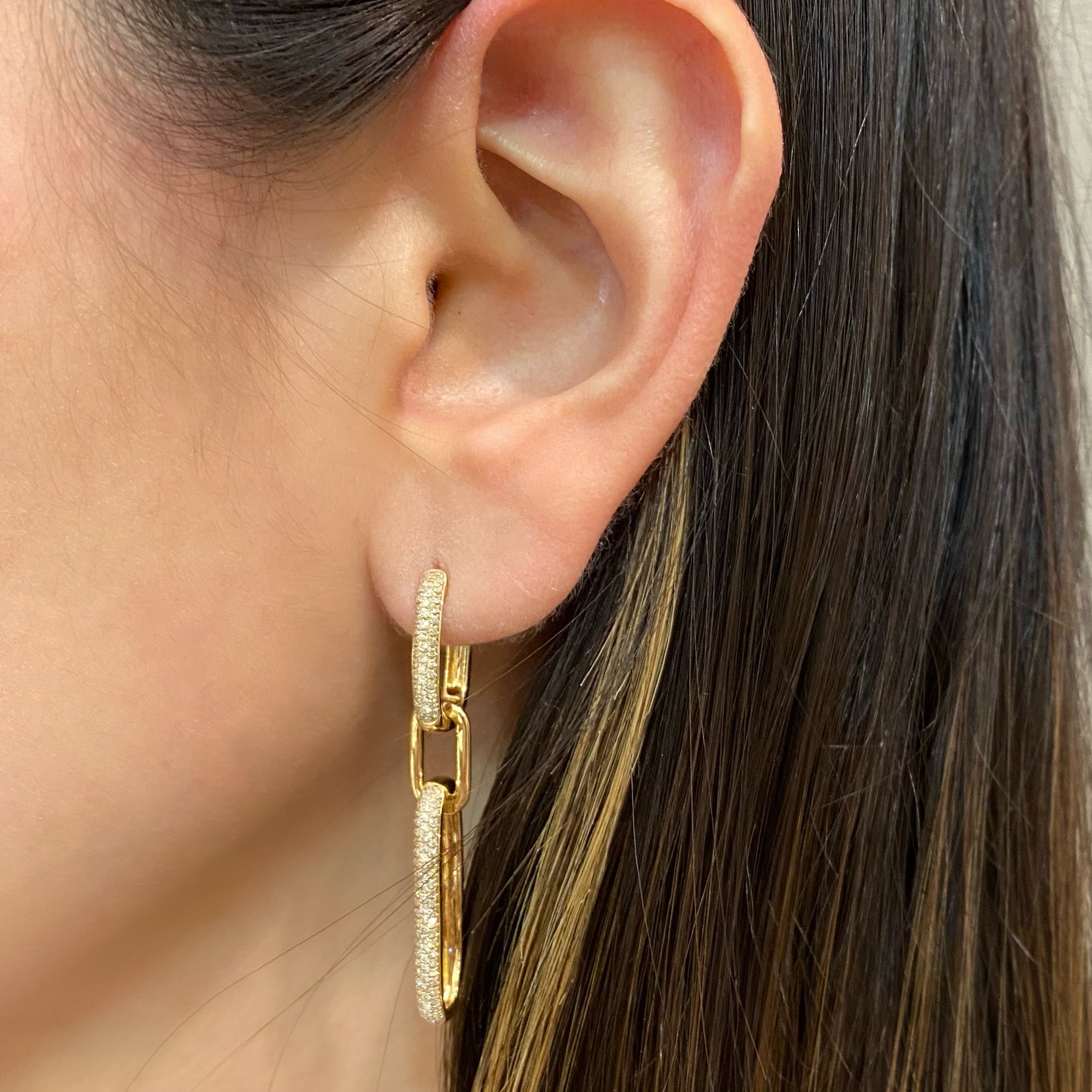 Effortlessly elevate your looks with these modern paperclip link earrings. Complete with shimmering pave diamonds, these danglers offer just the right amount of sparkle.