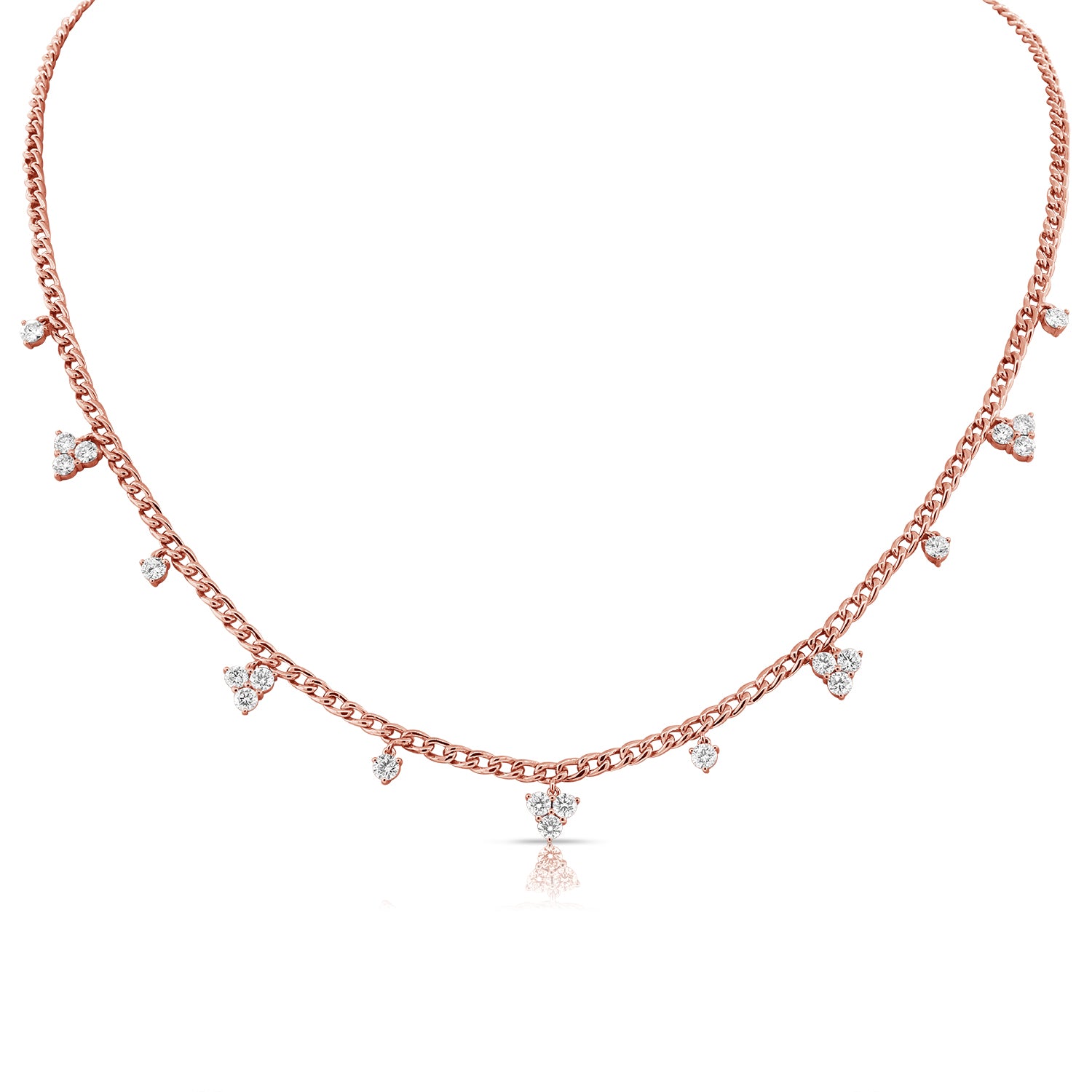 A fresh take on the classic diamond necklace – this sleek curb chain features alternating diamond clusters and single diamond drops. It’s a fabulous gift for any occasion.