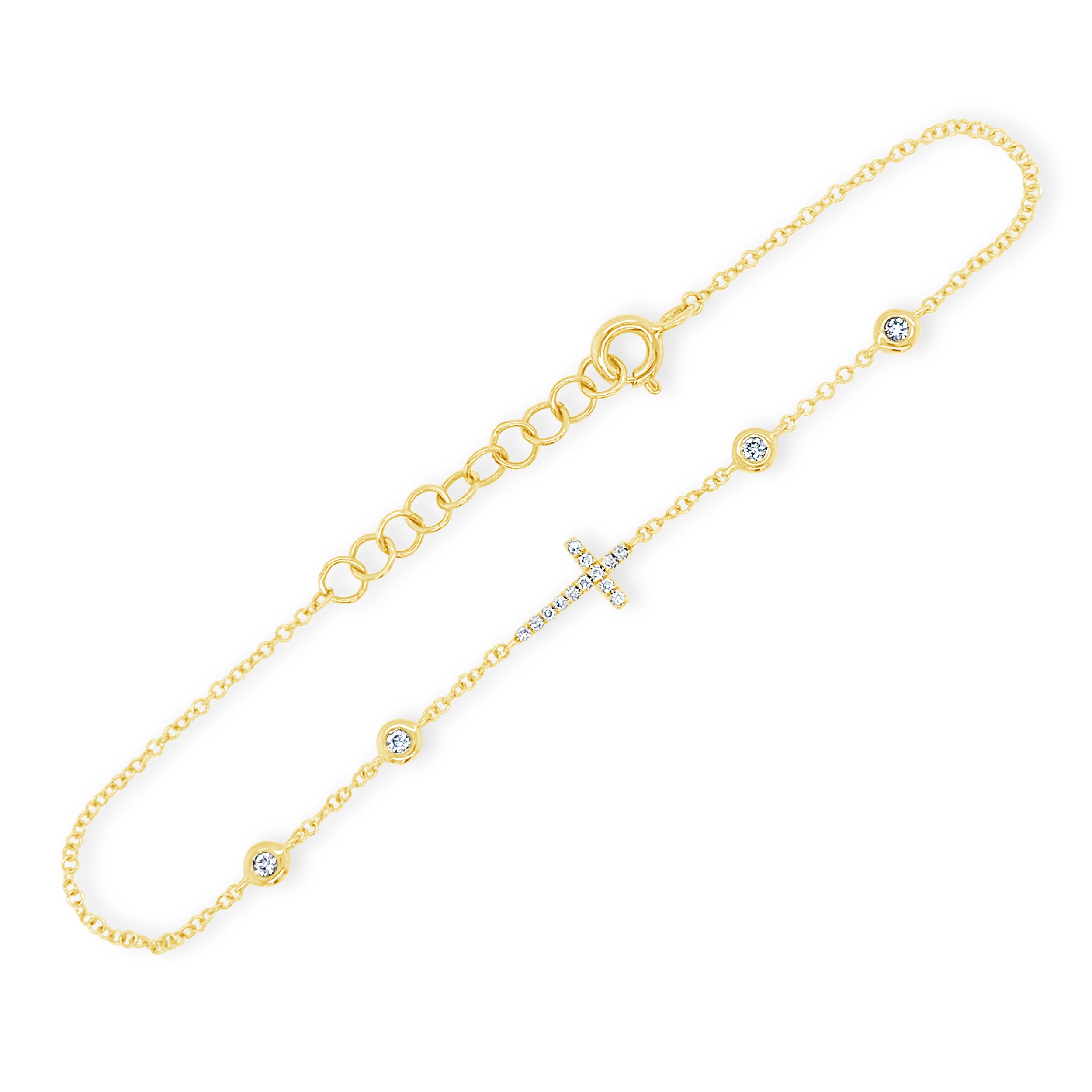 An ideal communion, confirmation, birthday or holiday gift, this beautiful bracelet features a diamond cross and bezel-set diamonds on a dainty cable chain.
