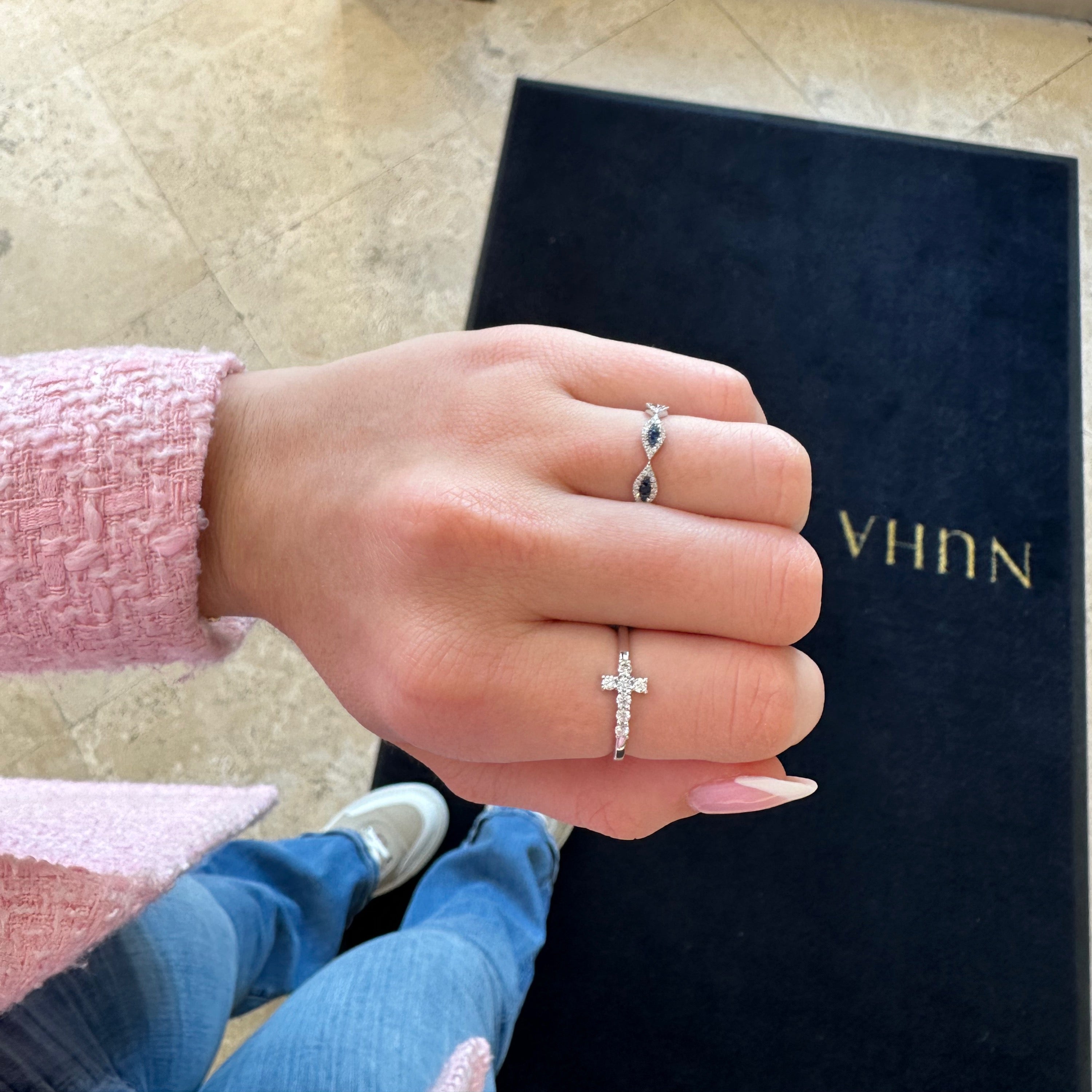 Honor your spirituality with this tasteful cross ring. Designed in 14K gold and accented with glittering diamonds, this elegant piece is ideal for everyday wear.