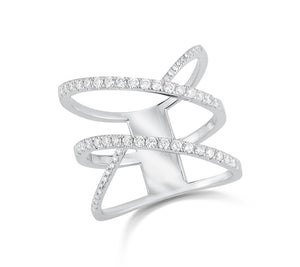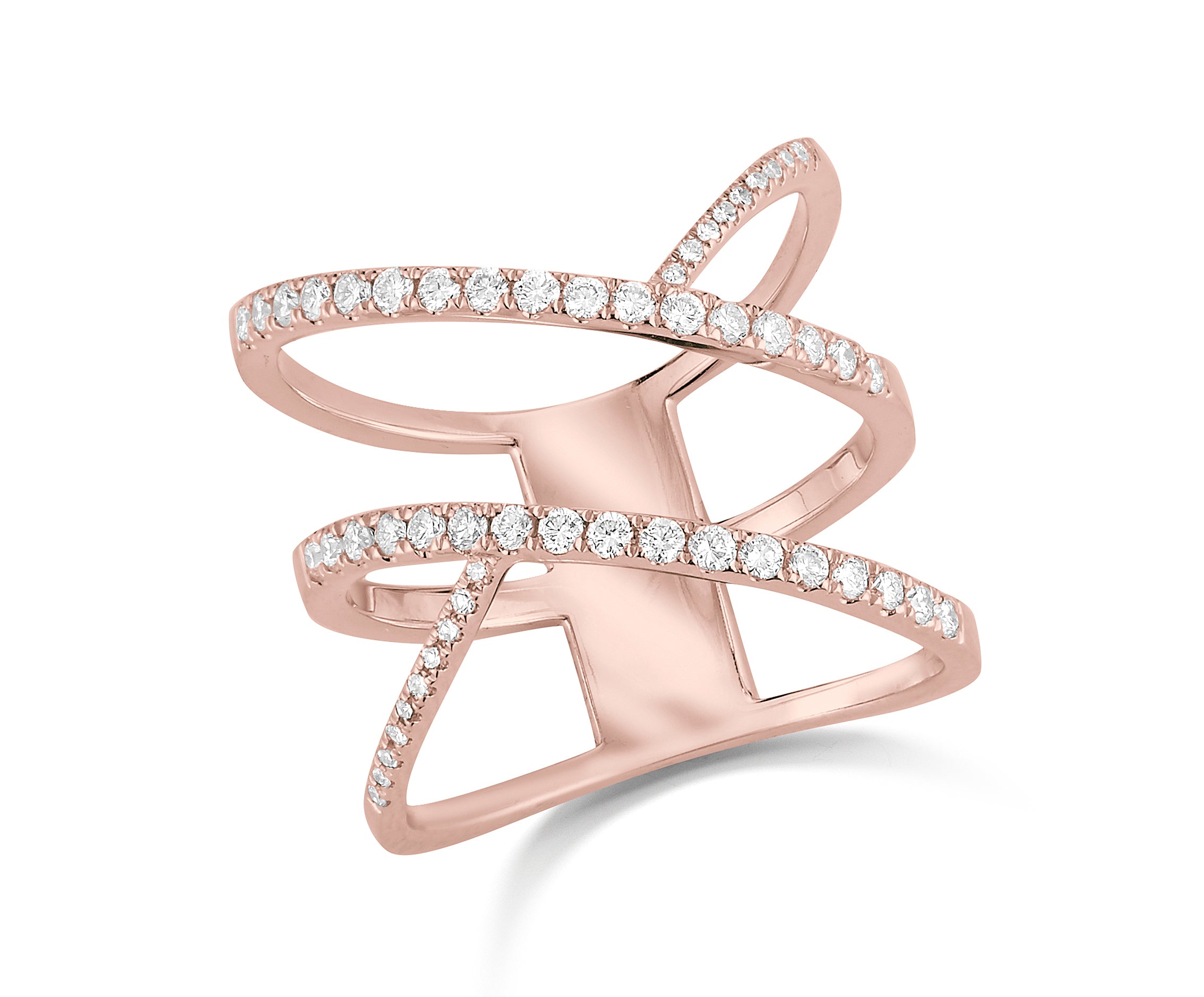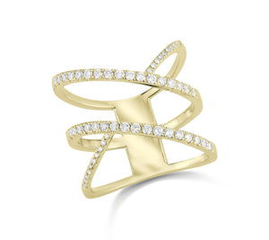 Bands of high quality 14k gold twist together to create an abstract diamond ring of never ending beauty.