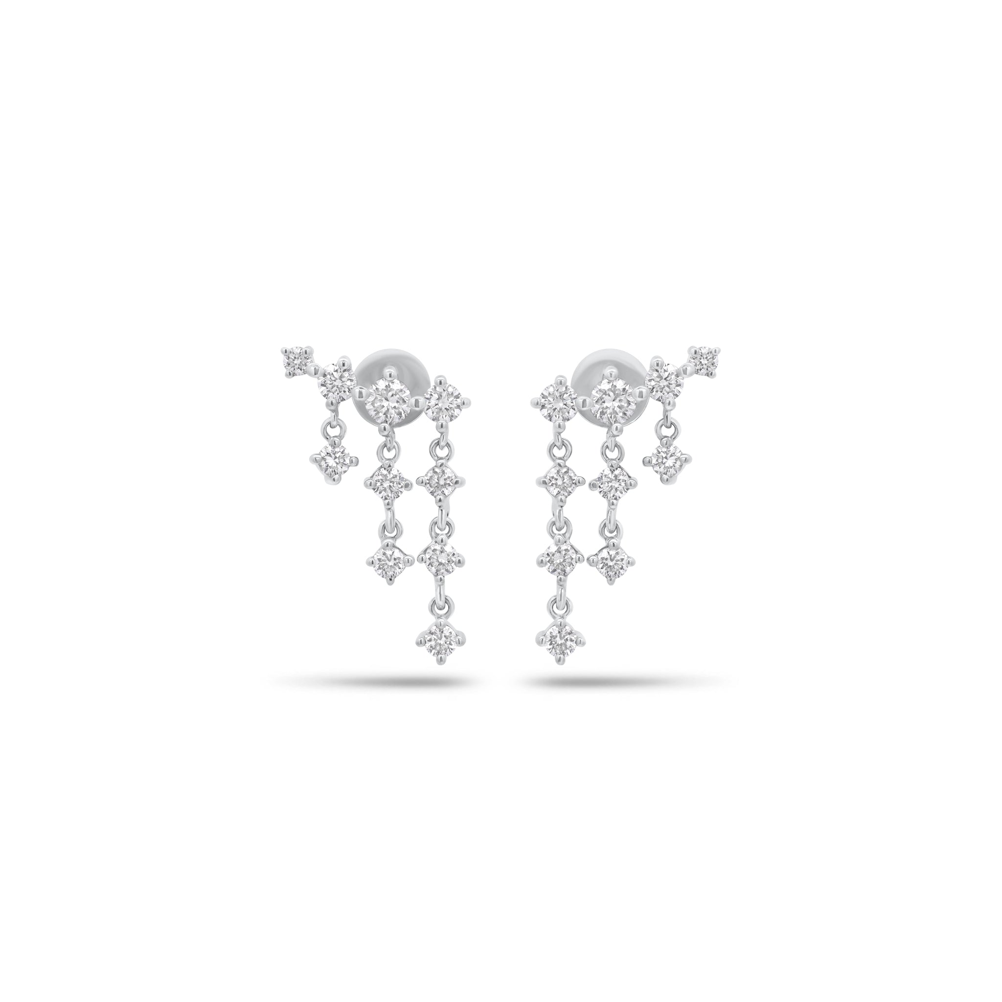 Bring the beauty of the night sky to your looks with these gorgeous, crawler-style earrings. Like wearing mini constellations on your ears, these earrings feature an arc of diamonds with multiple stones dangling from each stud.