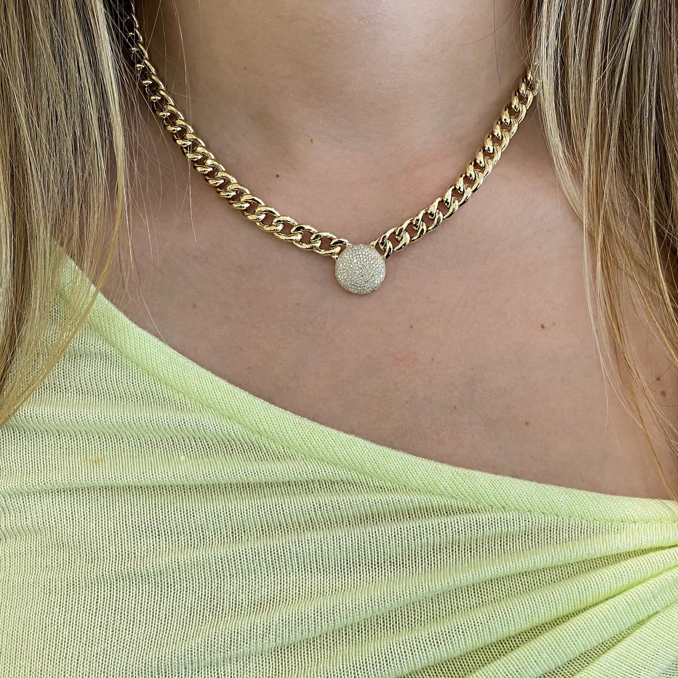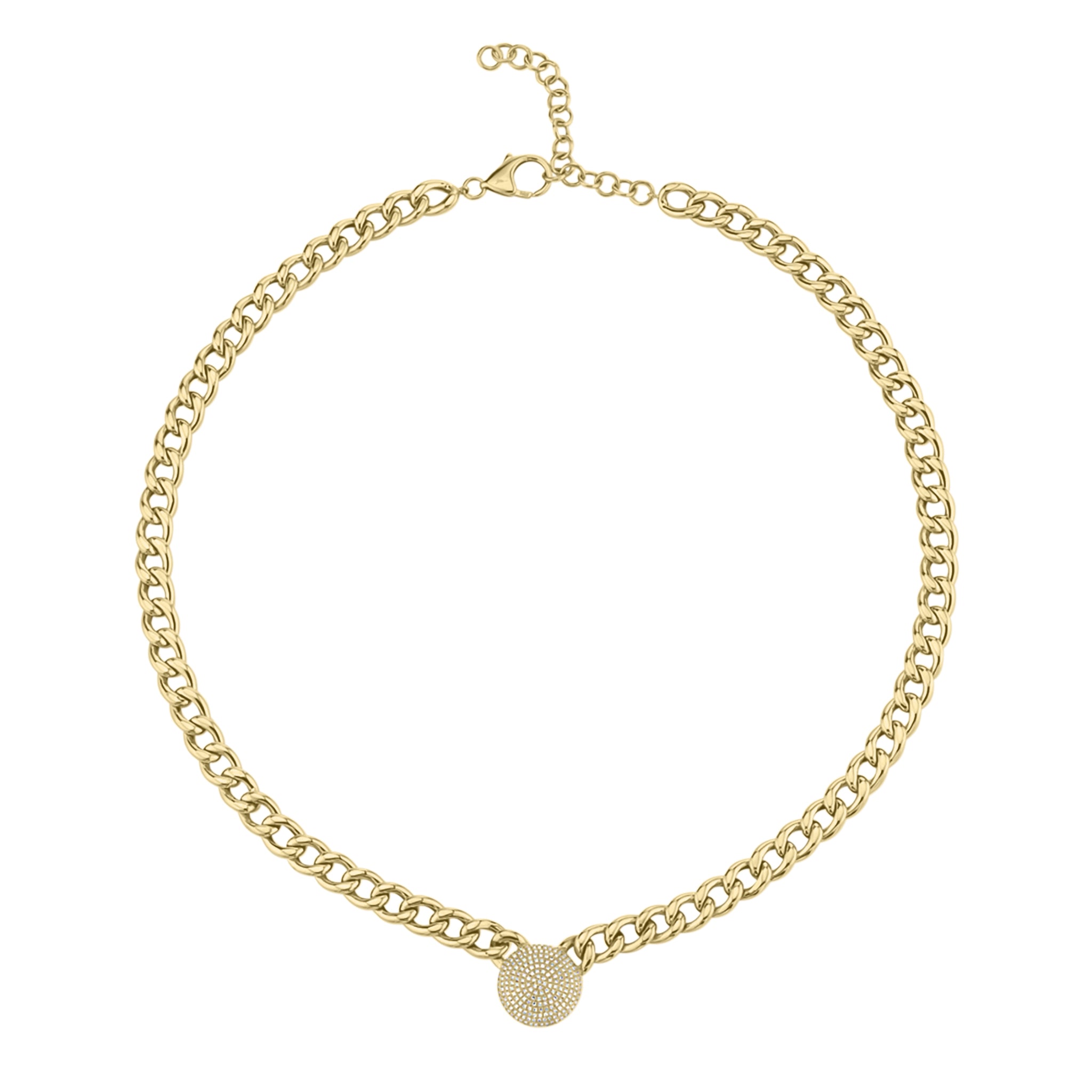 Meet your new go-to choker. Featuring a bold 14K gold curb chain and a shimmering diamond disc, this piece is just as glam as it is versatile. Pair it with longer chains for a chic, layered look.