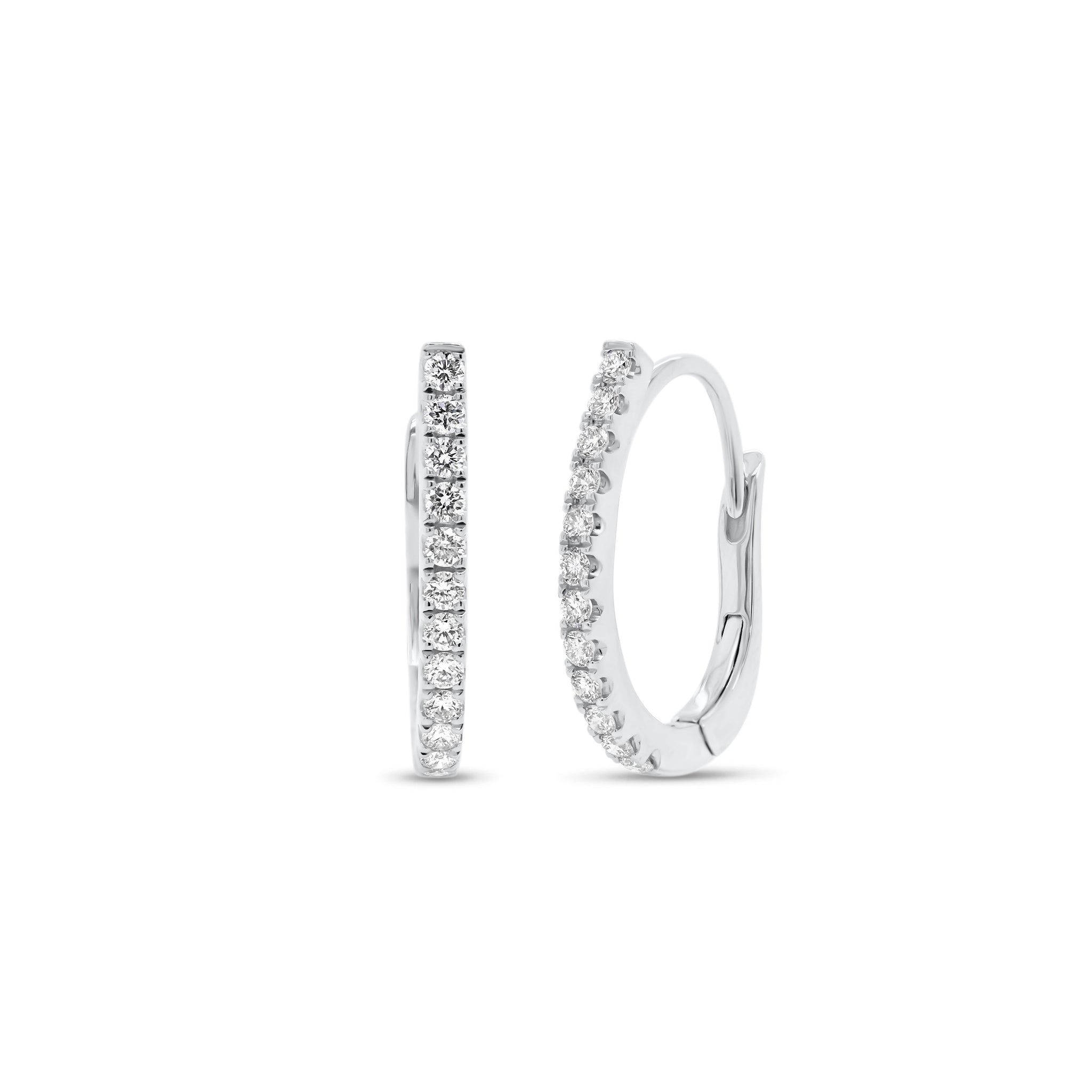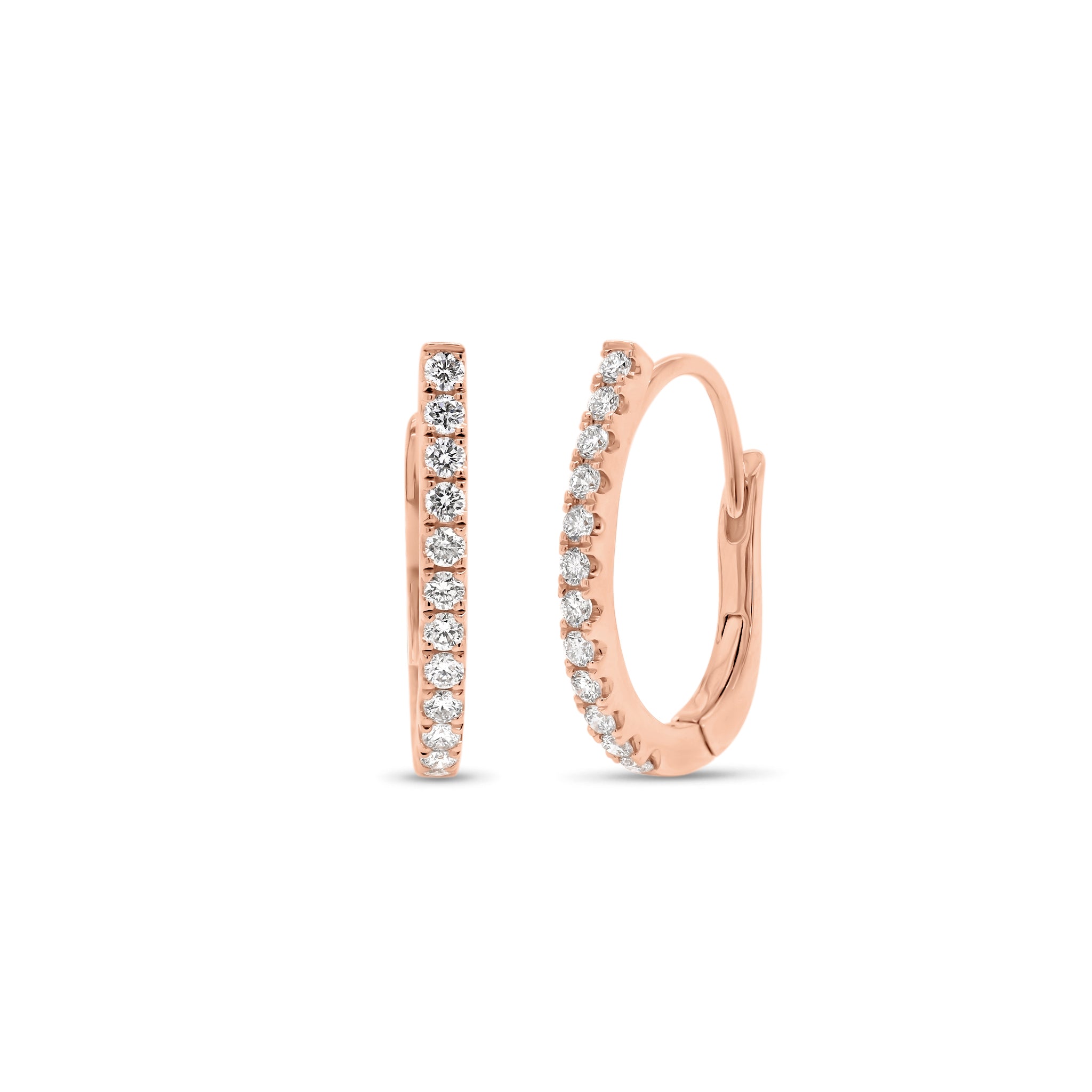 Destined to become your next favorite accessory, these diamond huggie earrings offer just the right touch of sparkle. They feature 24 round diamonds precisely set in lustrous 18K gold.
