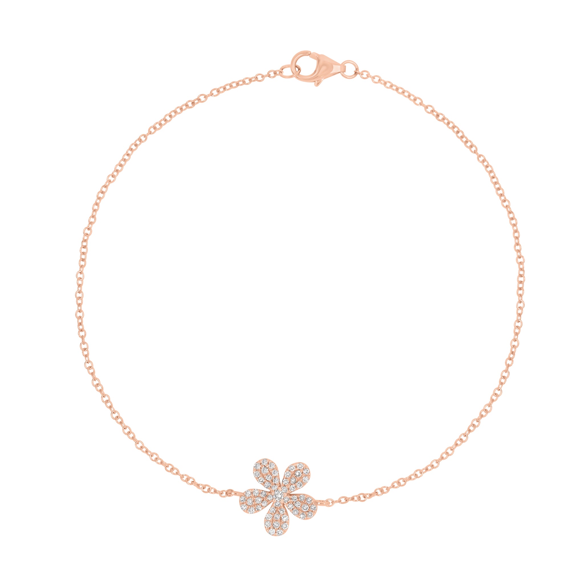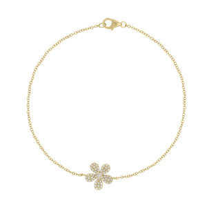 Bring a hint of whimsical style to your looks with this dainty fashion bracelet. Featuring a diamond flower set on a delicate 14K gold cable chain, this piece will make a beautiful addition to your next arm party.