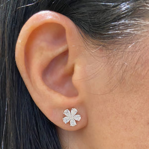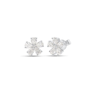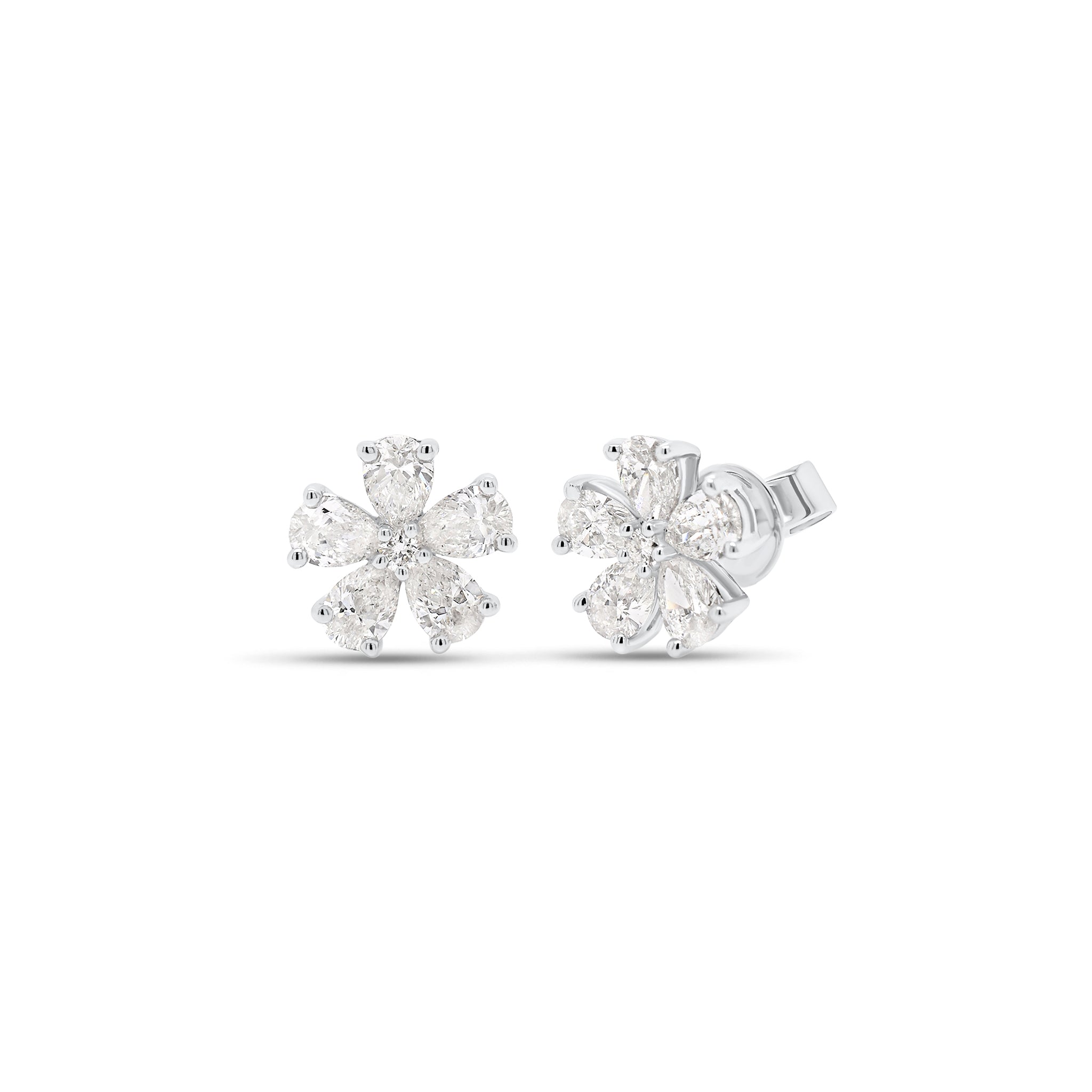 Secure your beautiful, blooming style with these gorgeous Diamond Flower Stud Earrings. One round diamond is featured at the center of each stud, while five pear-shaped diamonds flare out like sparkling petals. These 18K gold earrings thrive in an ear stack or alone, making them a versatile piece every flower lover needs in their collection.
