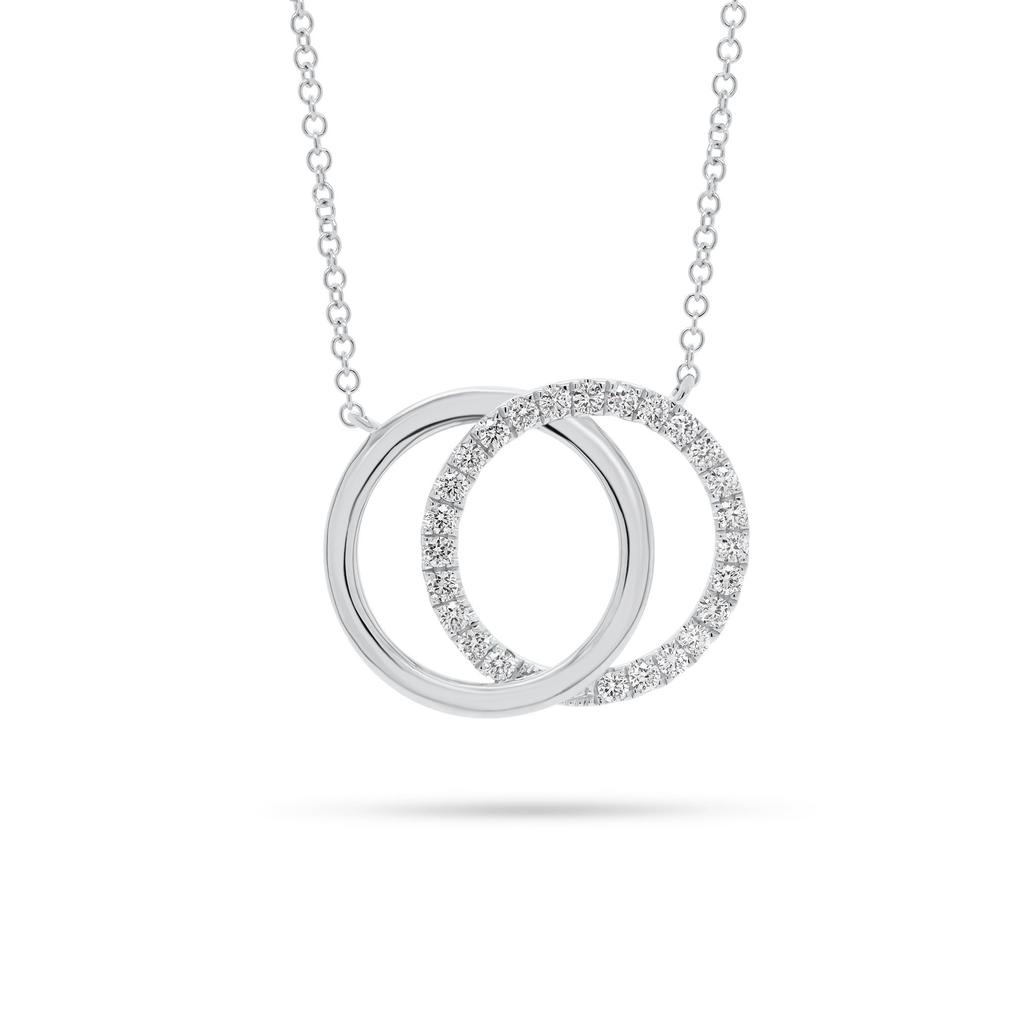 Linked rings of diamonds and solid 14k gold form a striking pendant in this classic piece. Chic and versatile, this necklace makes for the perfect gift.