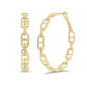 Show off your style with these dazzling hoops. Featuring glittering diamonds set among lustrous 14K gold links, these earrings are sure to make a statement.