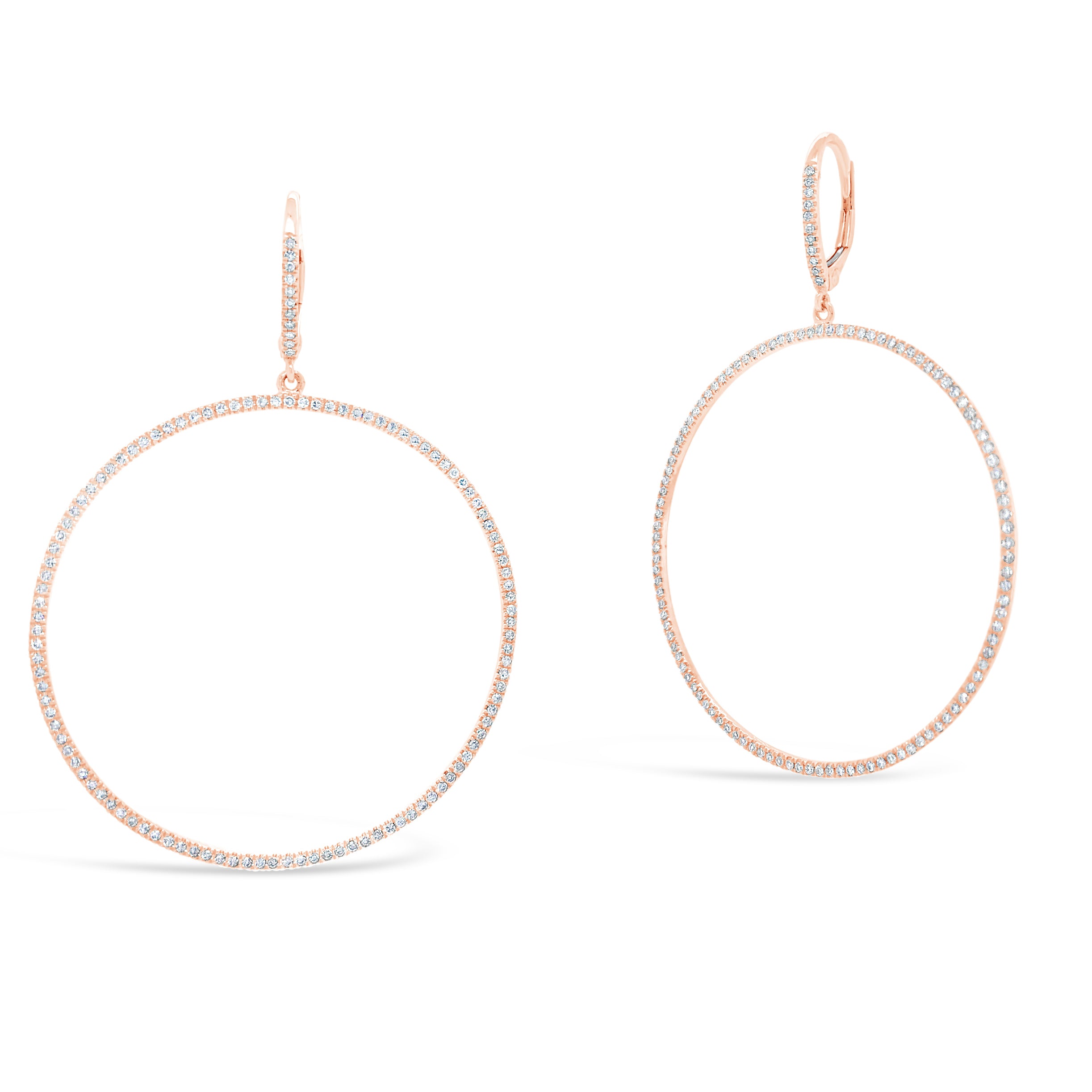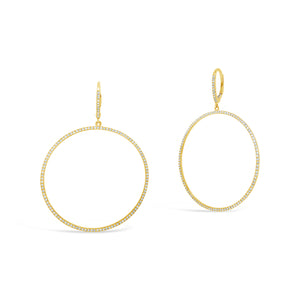 A fun play on the traditional hoop earring, these diamond-encrusted dangles will give a chic, modern edge to any ensemble. Simple and sophisticated, they’re sure to be loved!